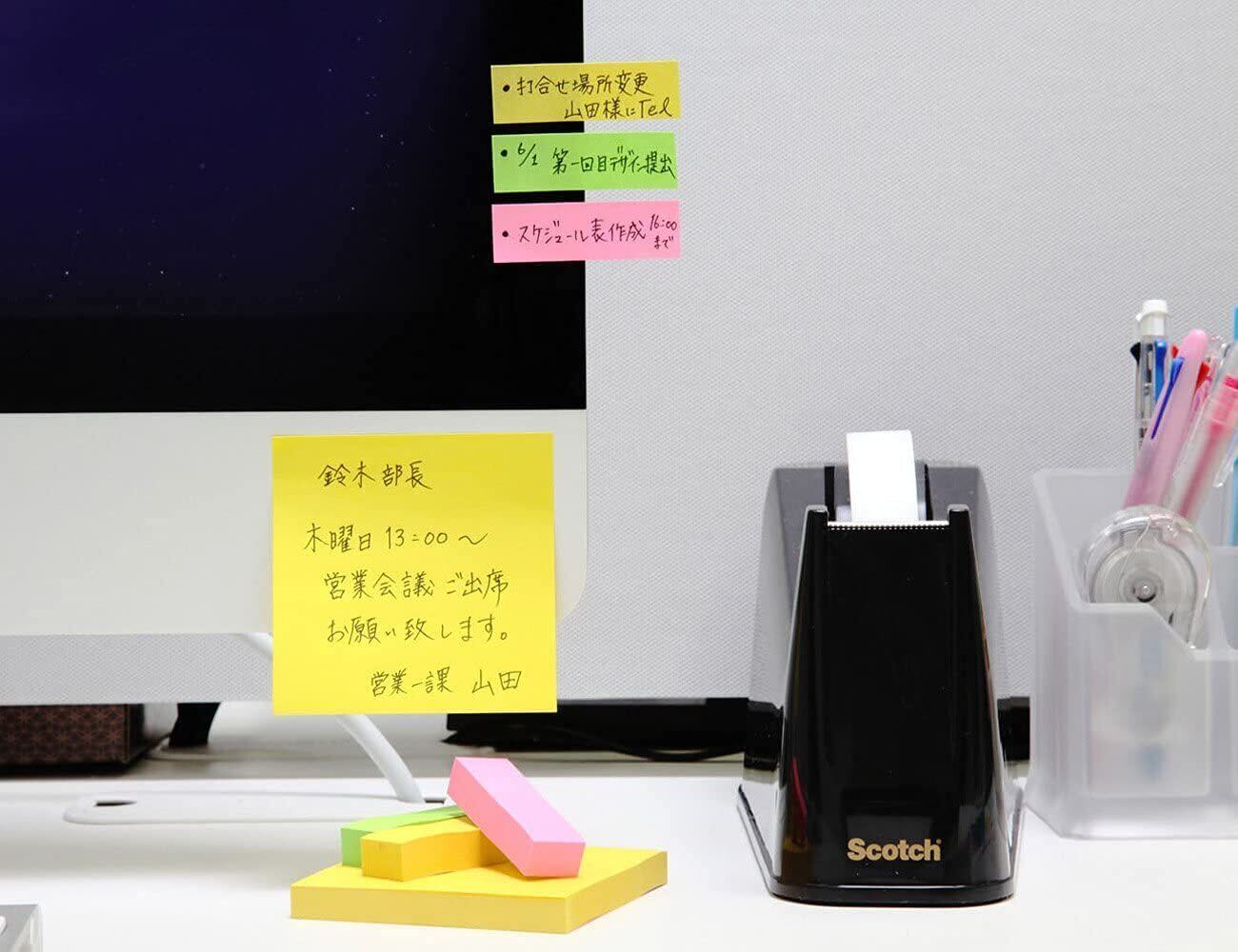 幅広い用途に対応したシンプルなデザインで、手軽に使えるのがポイント。付箋を使って思いついたアイデアをサッとメモしたり、整理整頓に役立てたりできます。デスク周りや壁に貼って、視覚的に情報を管理することも可能です。