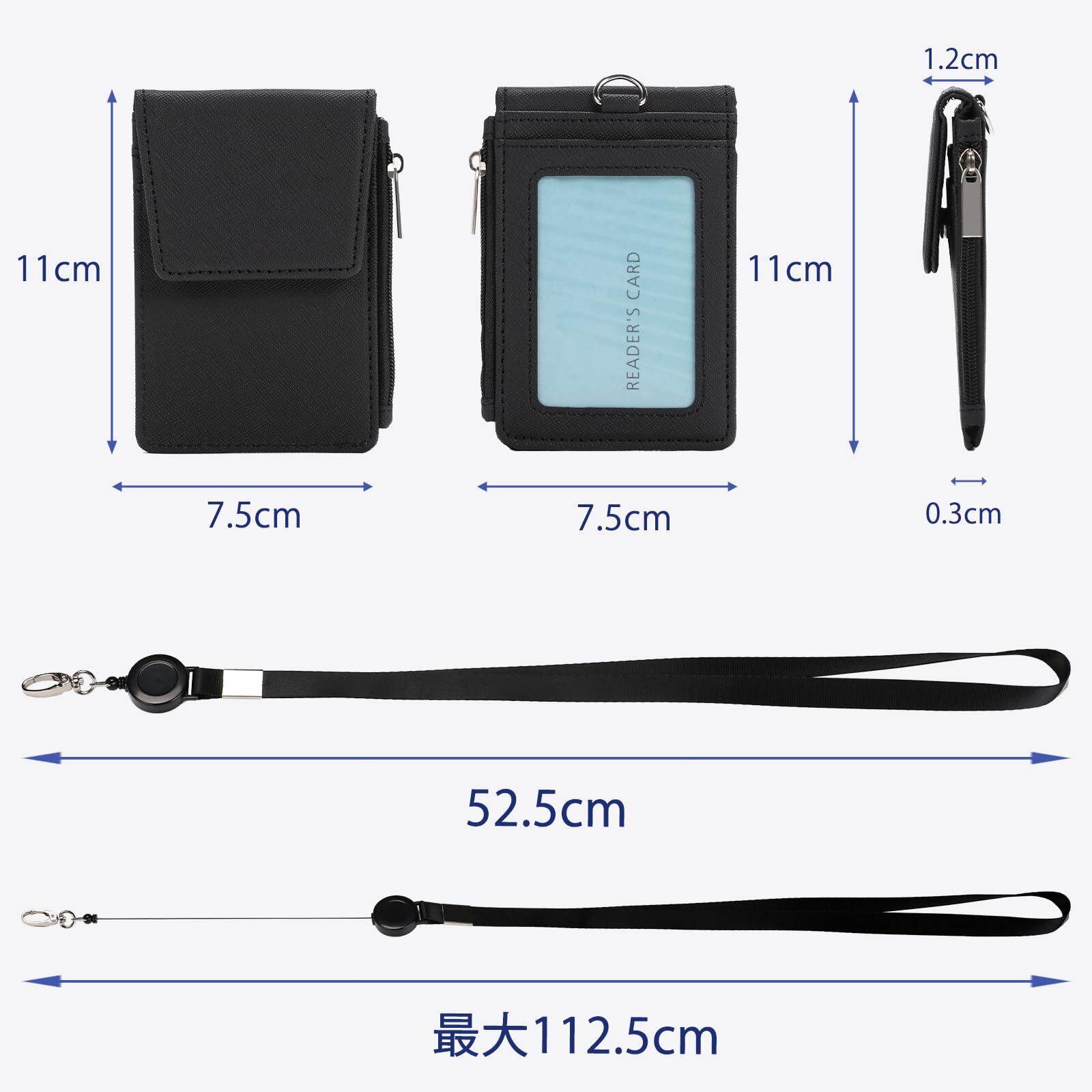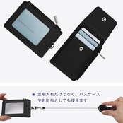 [Etercycle] 定期入れ 伸縮リール式ストラップ付き パスケース ICカードケース 小銭入れ付き 4枚収納 両面用 男女兼用 (ブラック)