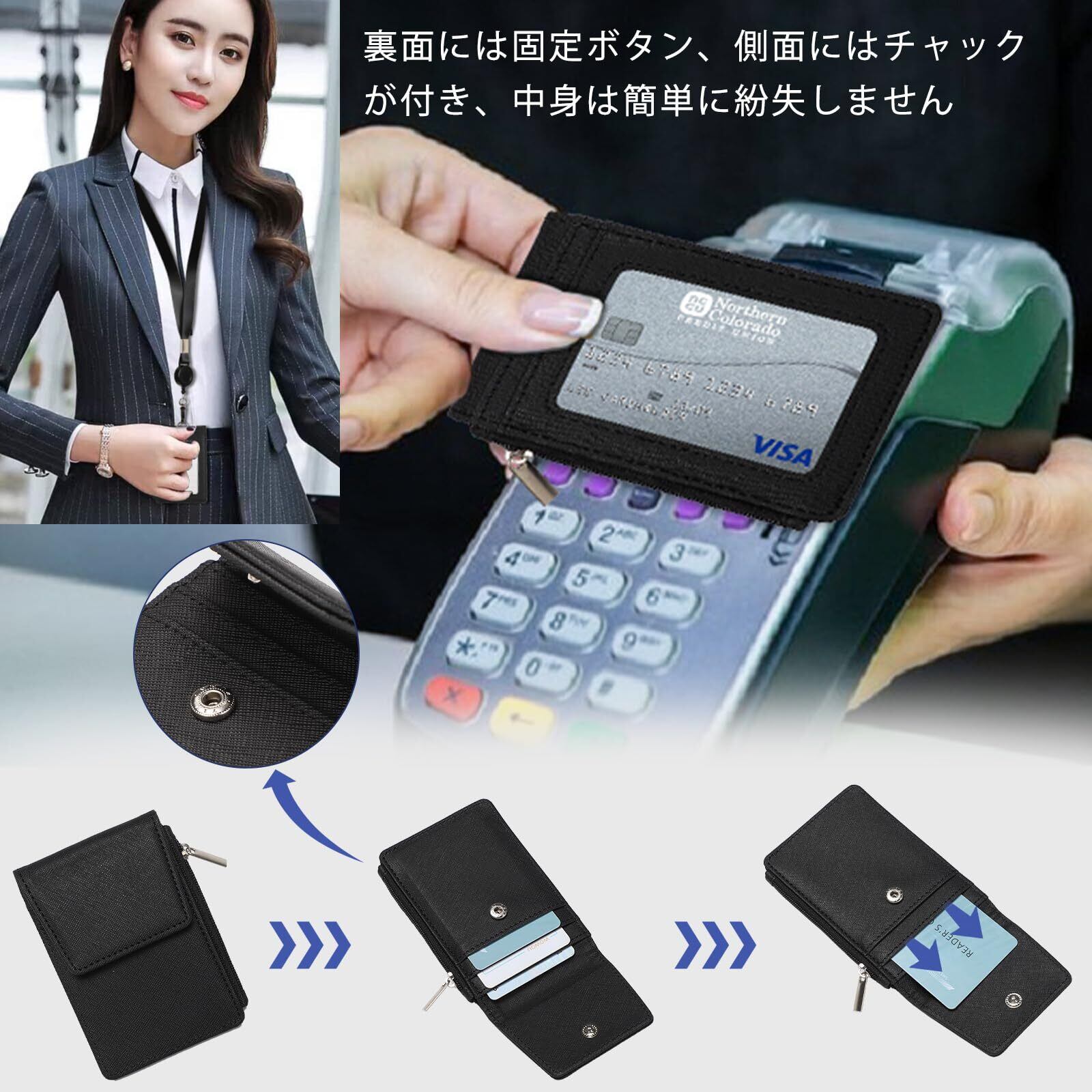 【実用性】正面に一枚、そして裏面に三枚、計四枚のカードを収納できます;裏面には固定ボタンが付き、カードが紛失する心配はいりません;さらに、側面にファスナー付きポケットがあり、小銭などの小物を入れるのに適しています;四色があり、男女兼用、お好きな色をお選びいただけます。