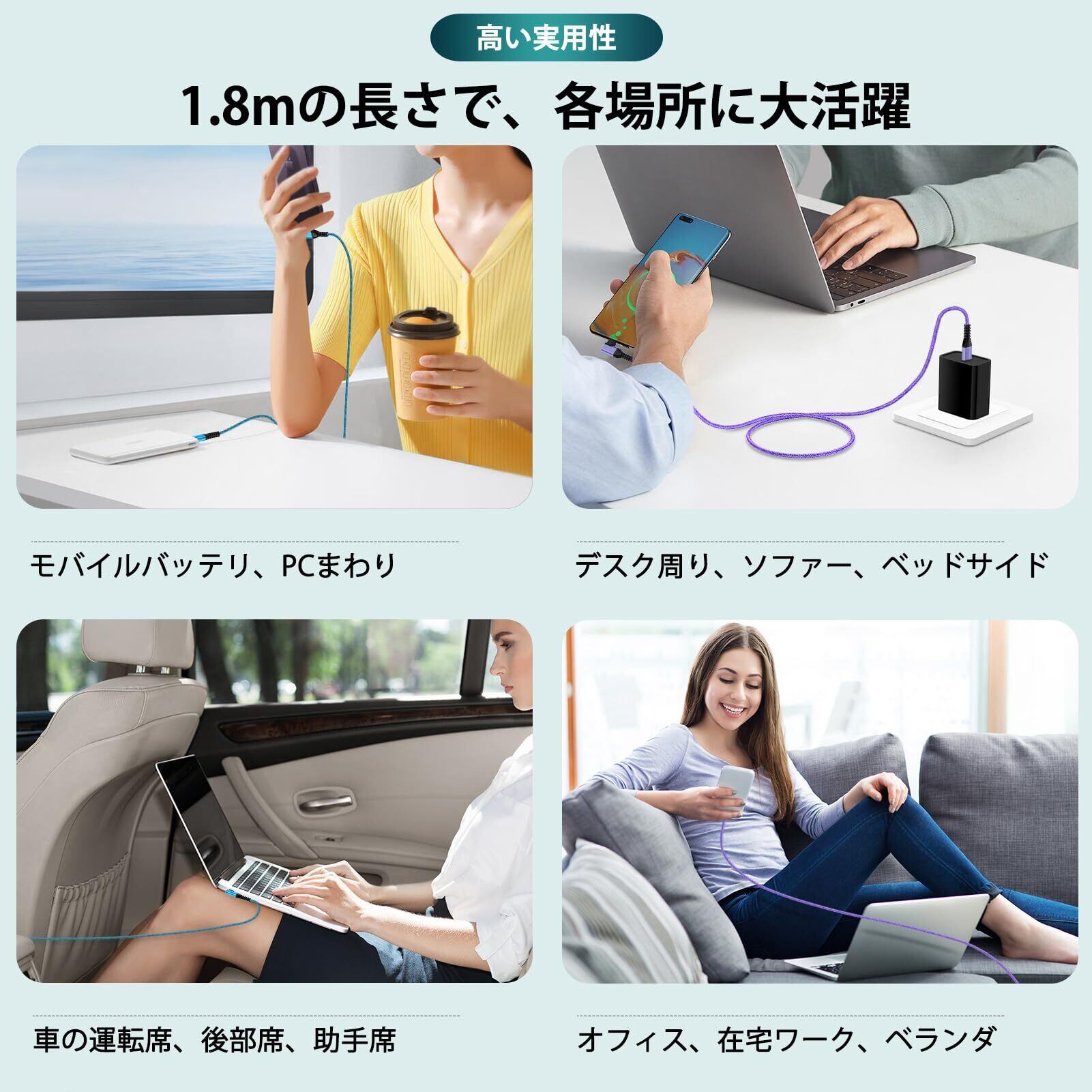 【12ヶ月の保証期間】パッケージ:カラフルなType-cケーブル*1.8M*2本セット、当店でご購入の製品は12ヶ月間の保証サービスをご提供しており、何か問題がございましたら、ご遠慮なくお問い合わせください。( 「注文履歴」→「出品者に連絡」から弊店までにご連絡ください。( 商品の交換 ・ 返品サービス など対応できます。)