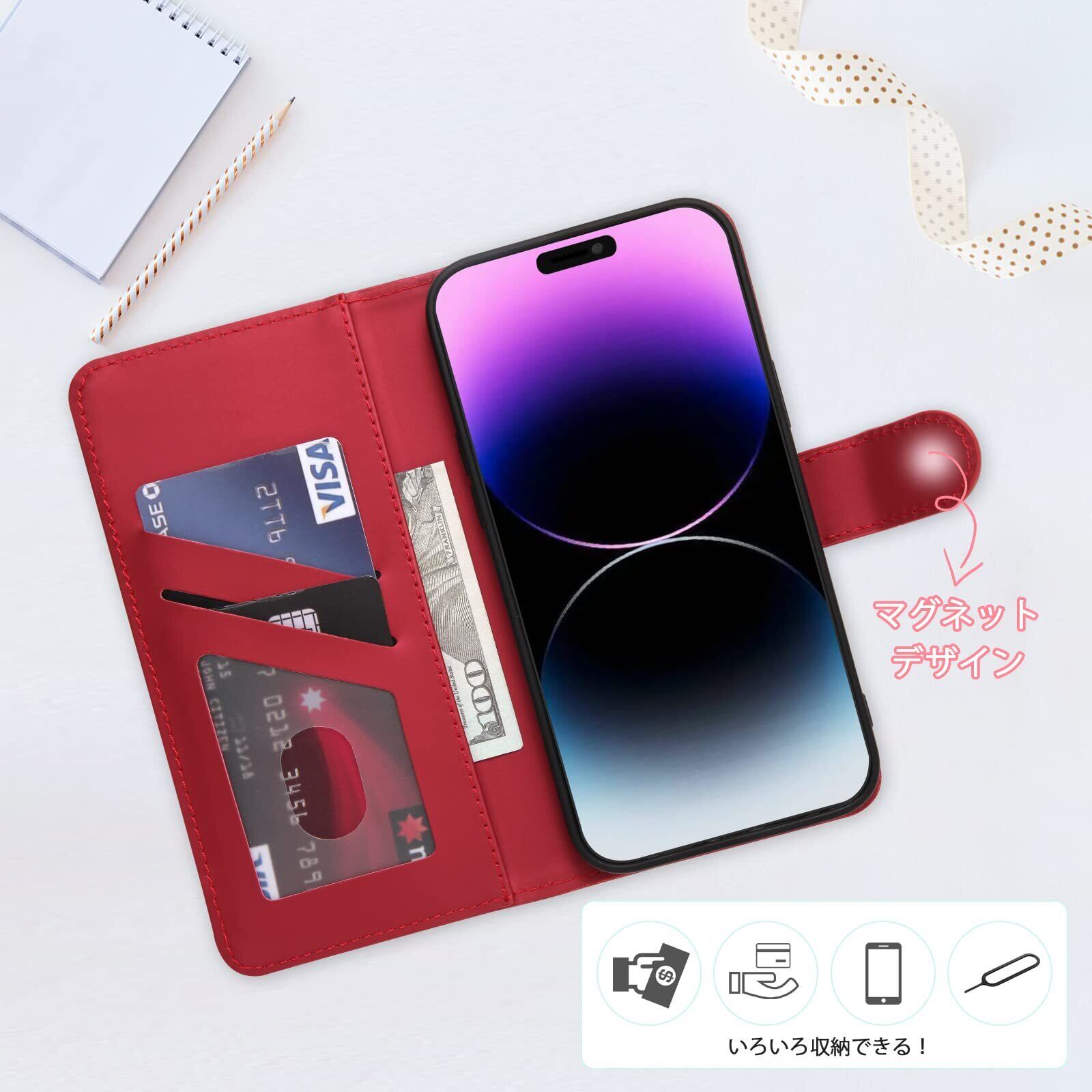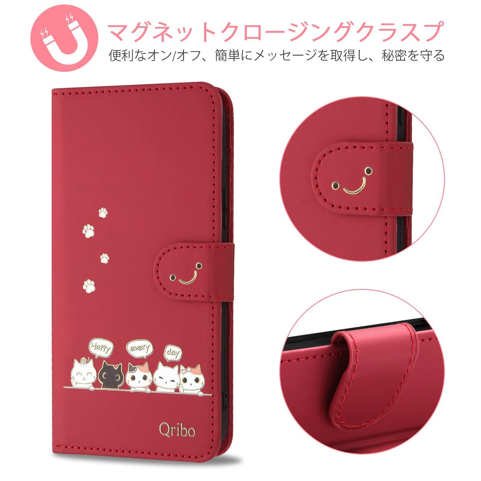 Qribo 適用の iPhone11ケース 手帳型 アイフォン11 カバー シンプルなのに可愛いデザイン エンボス加工猫柄 うれしい気持ち 6.1インチ対応 あいほん11手帳カバー iPhone 11 スマホケース iphone11 手帳型ケース アイフォン11ケース 薄型 防水 の耐久性 滑り防止 美しい 贈り物 友達 - 赤