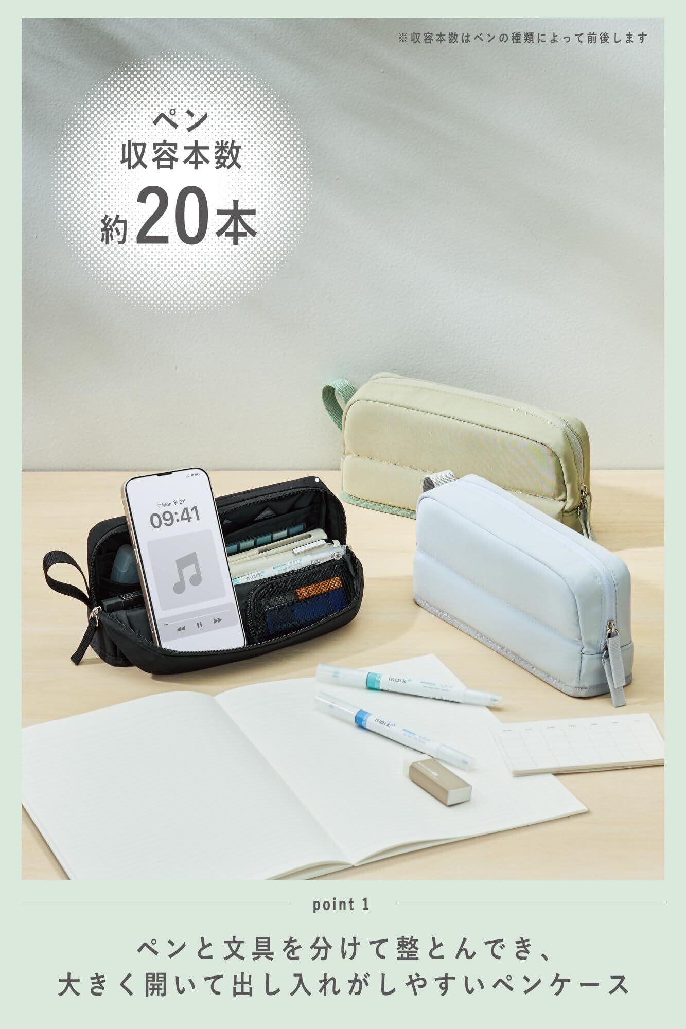 【ペン収容本数】 約20本 ※ペン収容本数は目安です。