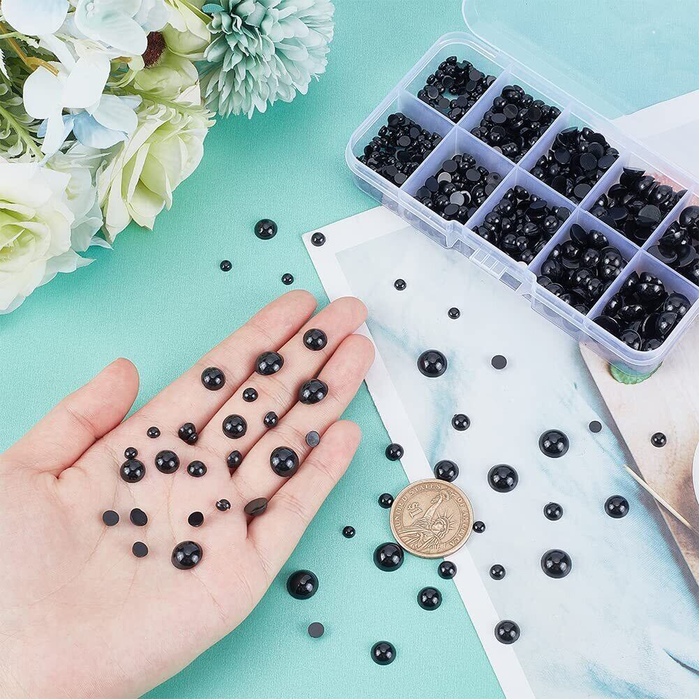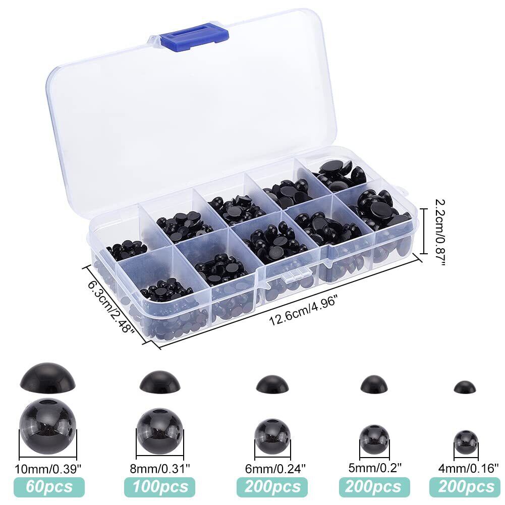 PH PandaHall 約760個/箱 4/5/6/8/10mm 人形 ぬいぐるみ目 テディベア アイ 目玉 ドールアイ 動物 クラフト ドールメイキング DIY用 手芸 パーツ 材料 ハンドメイド 素材 貼り付け ブラック