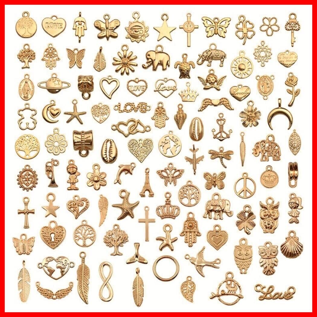 [HappyHome] チャーム パーツ ペンダントトップ アクセサリーパーツ 100個入り KCゴールド DIY 手作りアクセサリー