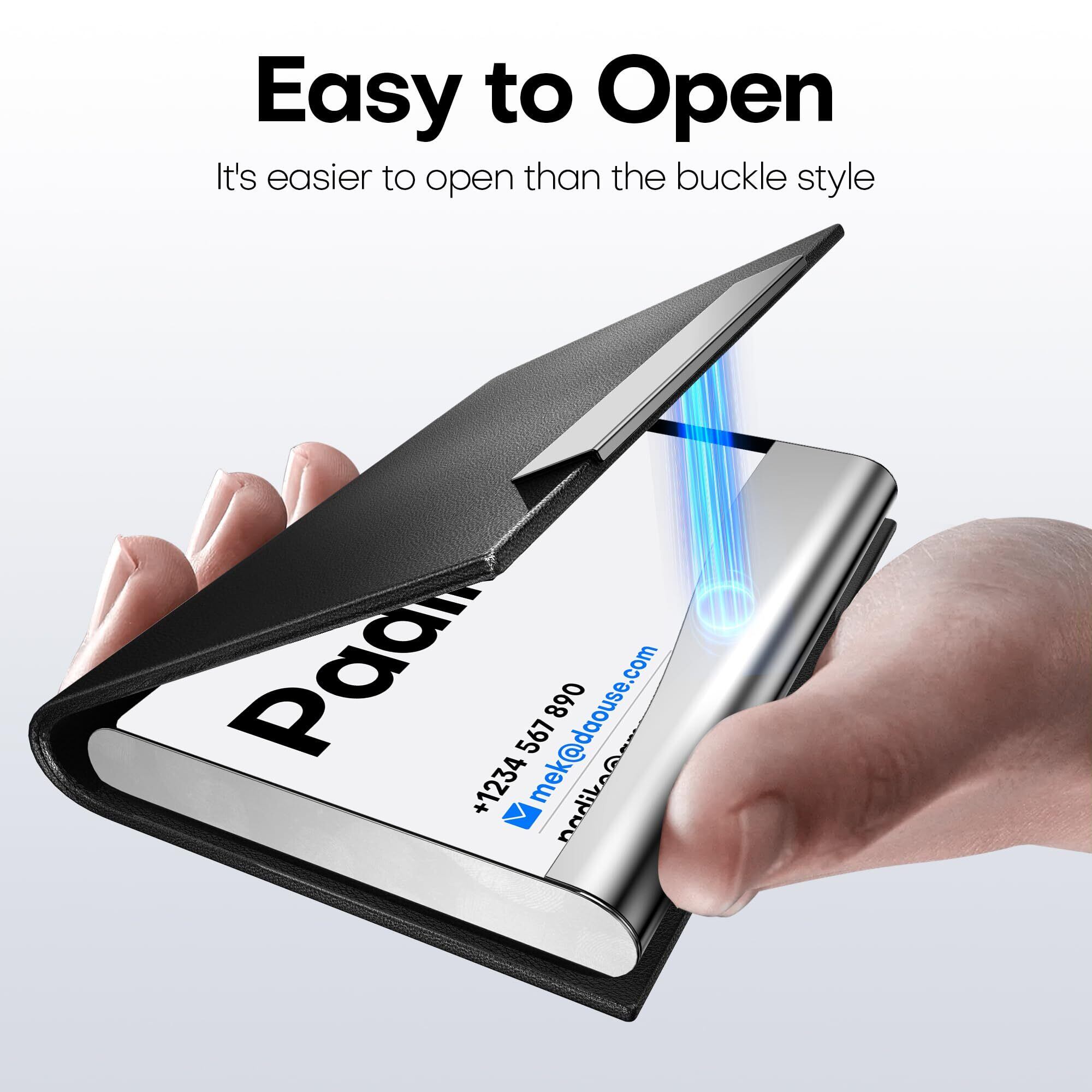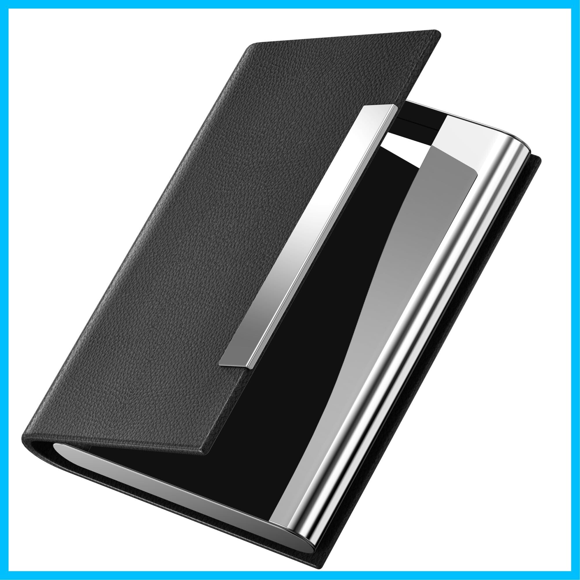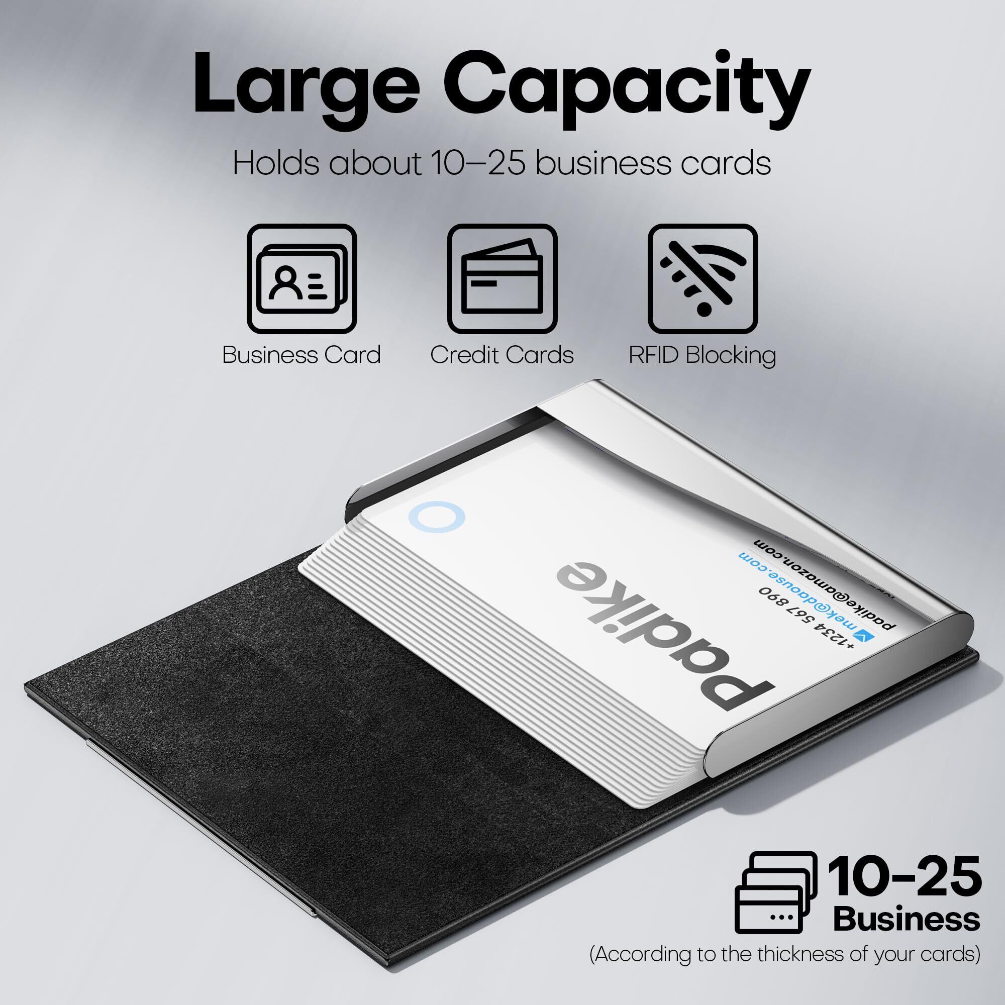 Padike名刺ホルダー、アップグレードされたマイクロファイバーレザー名刺ケースポケットカードホルダー(男性・女性用)、メタルスリム名刺ホルダー RFIDブロッキング名刺キャリア 磁気クロージャー付き (ブラック)