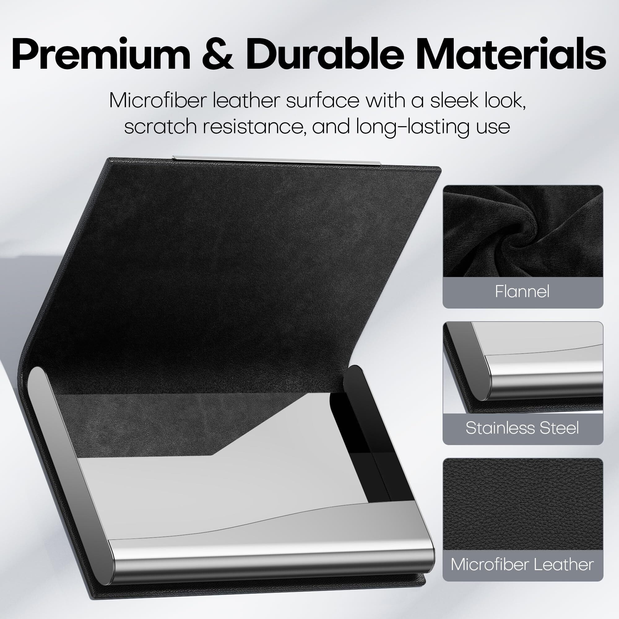 プレミアム素材:高品質のマイクロファイバーレザーとステンレススチールで作られた名刺ケースは、ユニークでスタイリッシュな外観を提供します