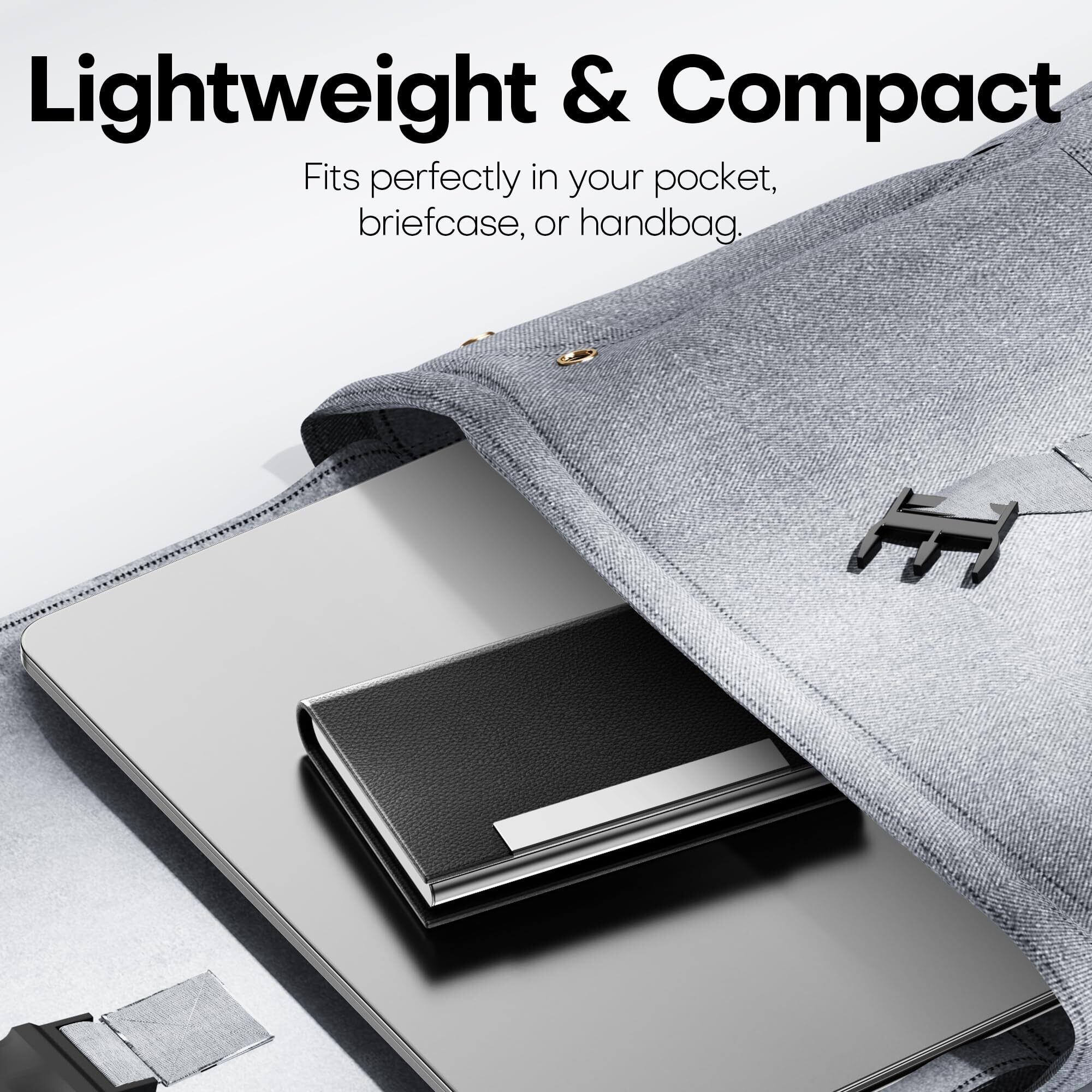 超薄型でコンパクト:厚さに応じて、15〜25枚の名刺または4〜8枚のクレジットカードを収納できます