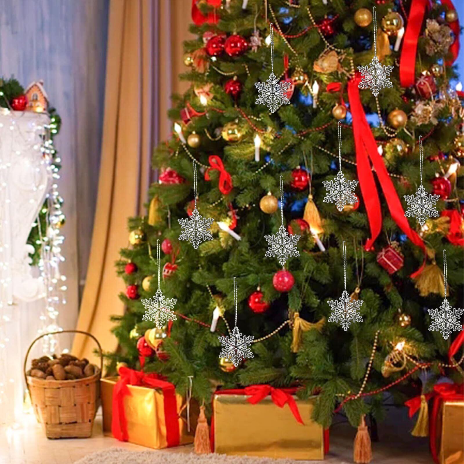 クリスマス オーナメント 飾り 15個セット 雪の結晶 アクリル クリスマスツリー 飾り 吊り下げ クリア クリスマスパーティー 新年 シャンデリア クリスタル 店舗 玄関 装飾 ロープ付き (A)