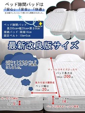 【 2つ接続ベルト】隙間パッドが隙間に埋まらないように、この隙間パッドの落下防止帯を一つから二つに改良しました。それに、収納袋付き、もっと便利になっています。アップグレード版隙間パッドの幅を13cmから20cmに、パッド長さを188cmから200cmに、挟む部分の高さを6.5cmから8cmに贅沢に改良。マットレス固定バンドも3cmから5cmに改良します。3段の溝がベッドからのずれを防ぎます。