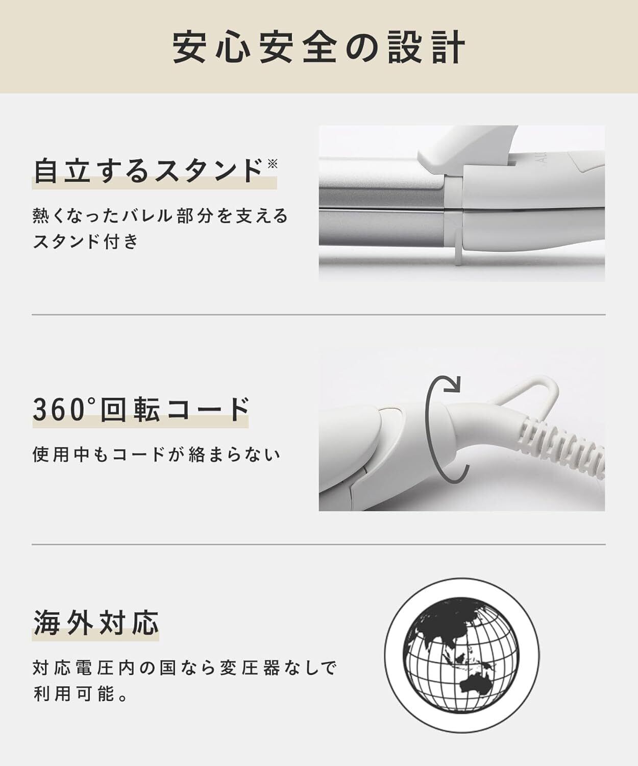【便利機能】MAX220℃・360度回転コード・オートパワーOFF機能