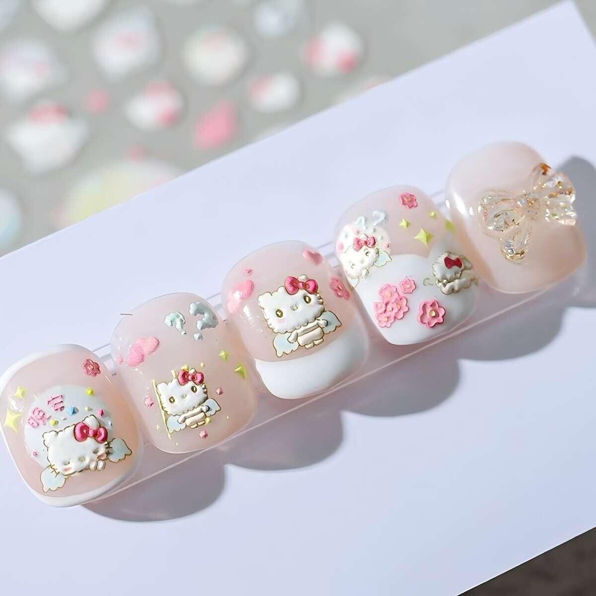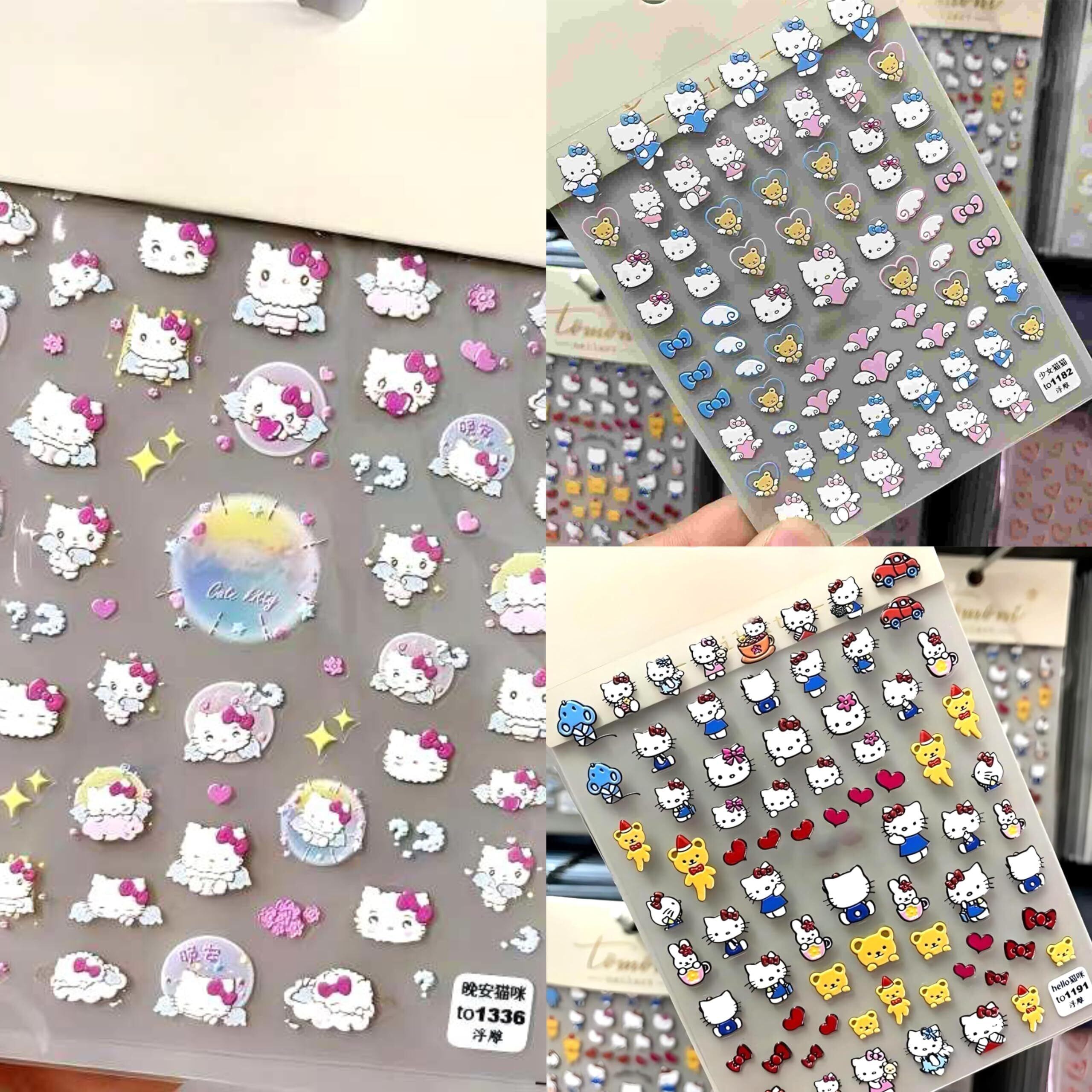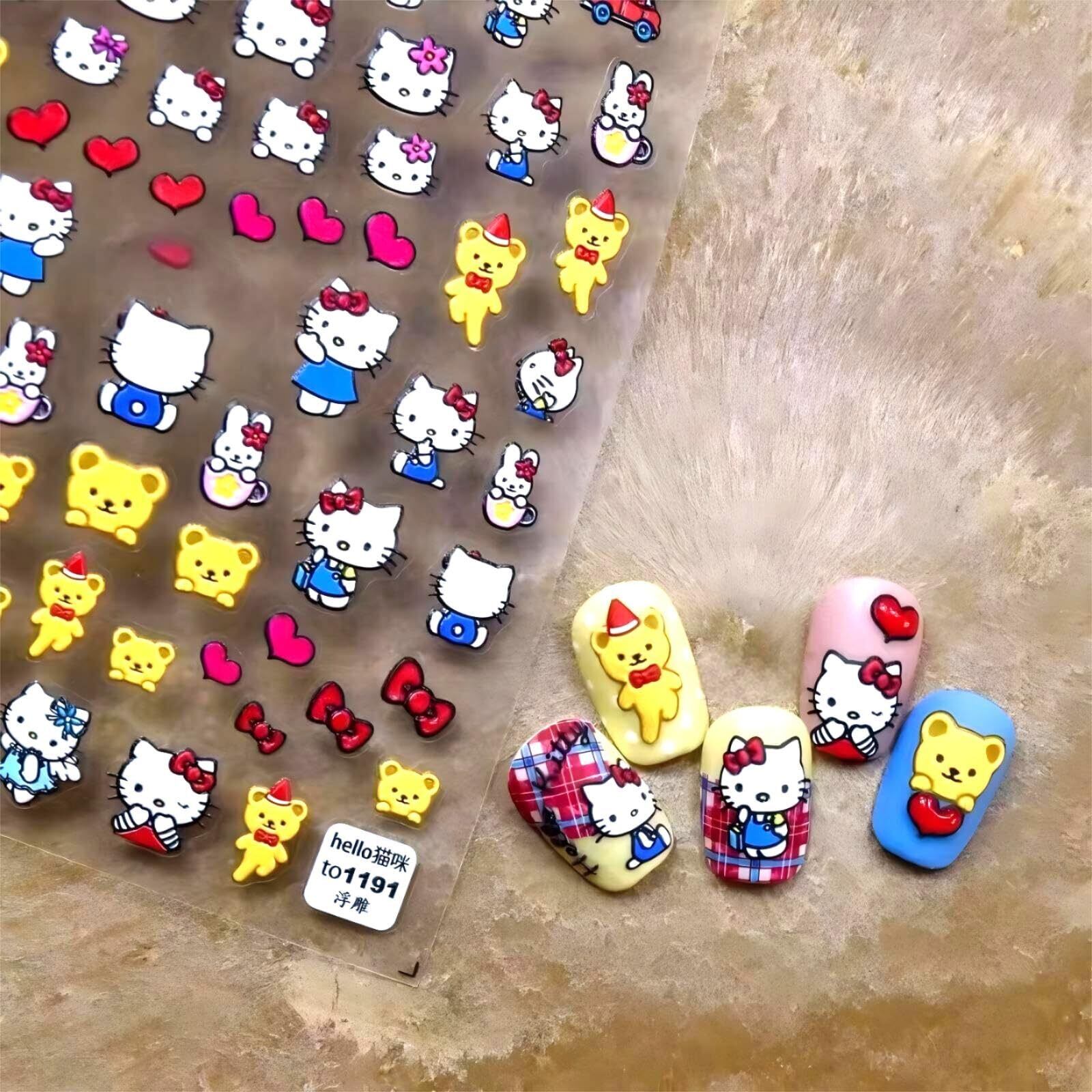 かわいい漫画ネイルアートステッカーハローキティネイルアートステッカーハローキティエンボスネイルアートステッカー3D粘着ネイルアートステッカーアニメカワイイデザインネイルアートステッカーガールズキッズレディース(3枚)