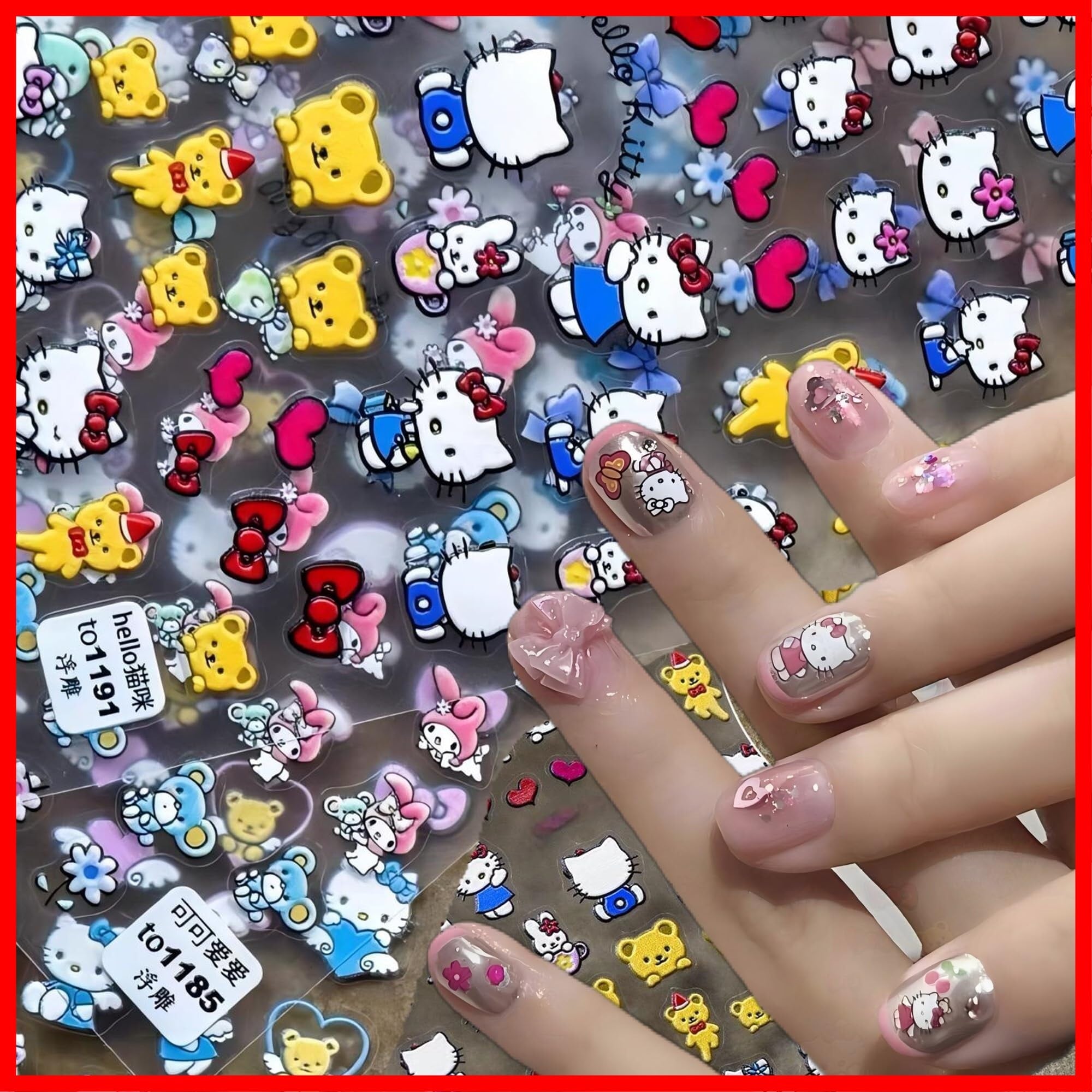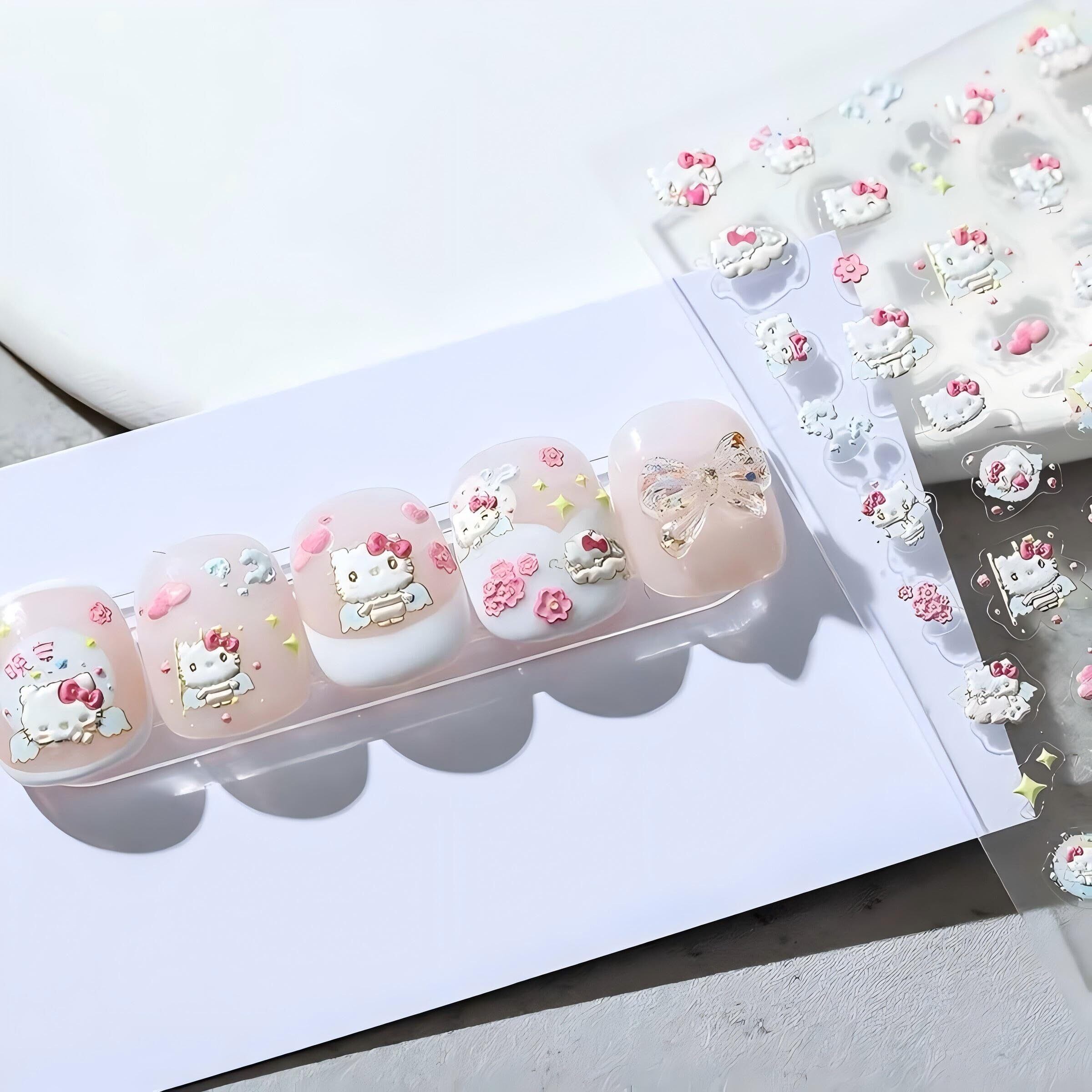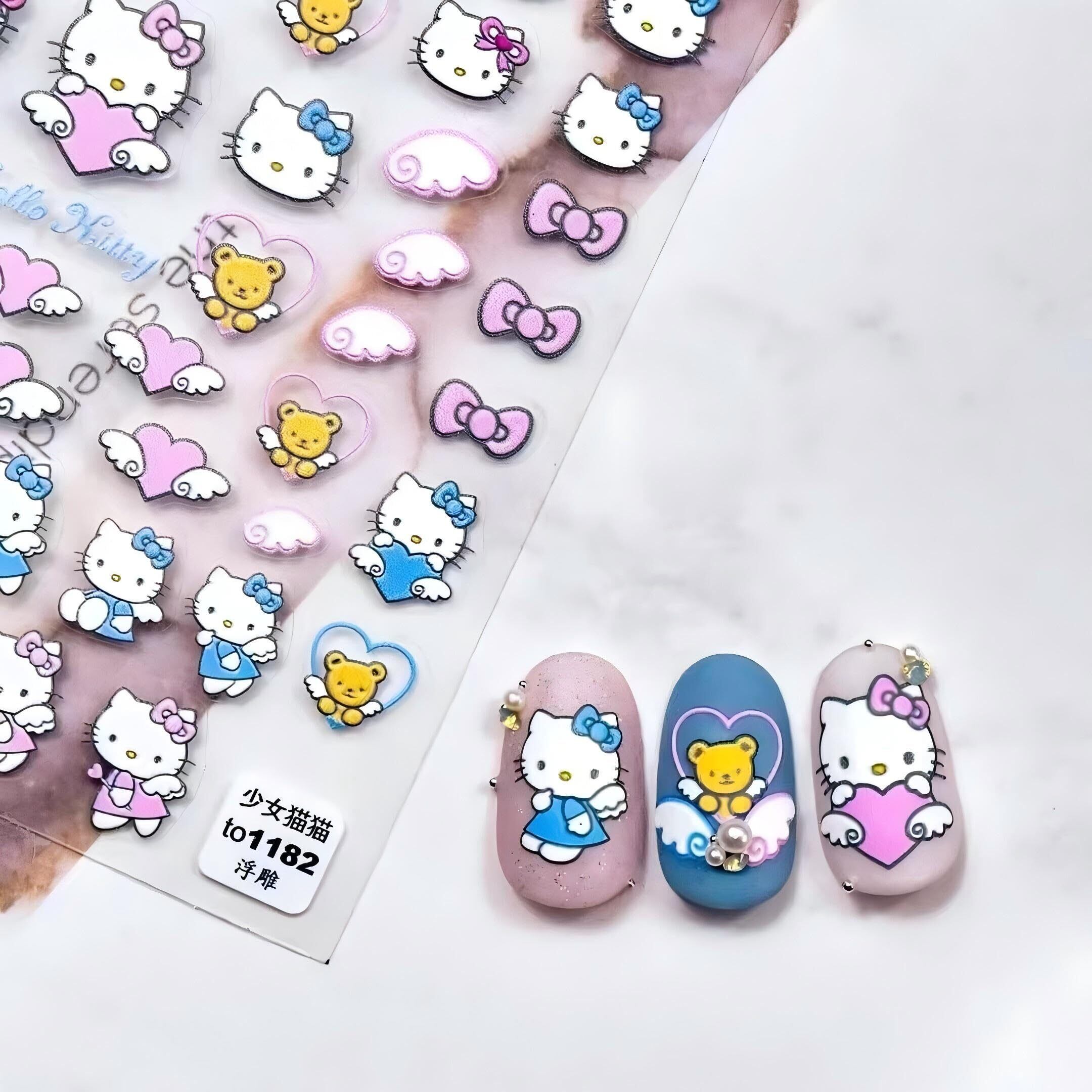 かわいい漫画ネイルアートステッカーハローキティネイルアートステッカーハローキティエンボスネイルアートステッカー3D粘着ネイルアートステッカーアニメカワイイデザインネイルアートステッカーガールズキッズレディース(3枚)