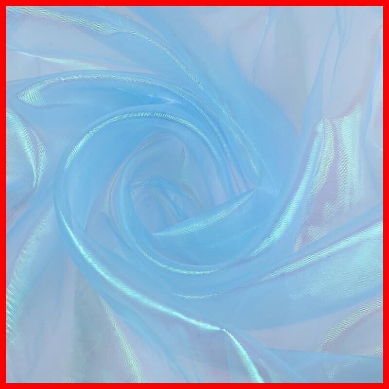 DERAYEE オーガンジー 生地 輝き グラデーション 透明 約145cm×200cmカット 織物 薄手 肌触りの良い 選べる19色 風通し キラキラ 手作り DIY 裁縫 手芸 贈り物 (ライトブルー, 2M)