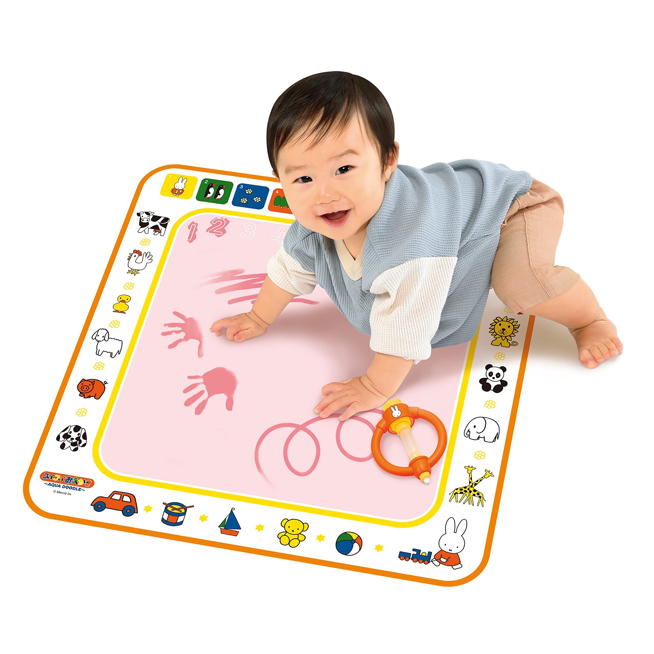 はじめてのおえかきにおススメ、ミッフィーのスイスイおえかき。水でかくので汚れず、乾けば消えるので何度でも繰り返し遊べます。小さなお子様の手に持ちやすく、安全な形状のペンです。