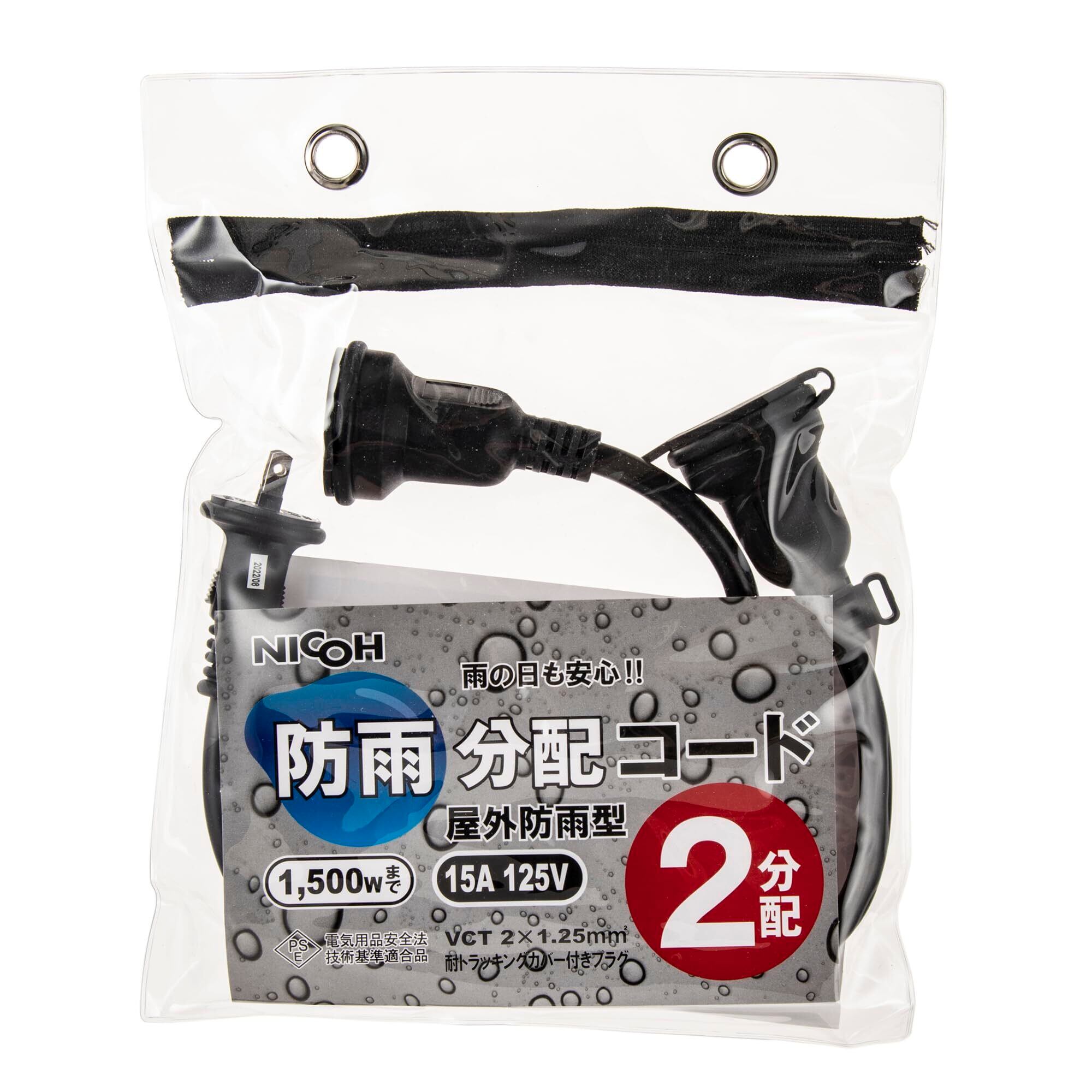 NICOH(ニコー) 防雨型 分配コード 2分配 15A 合計1500Wまで 耐トラッキングカバー付 NCT-DB2WP 屋外防雨型の2分配コード 一つの電源を2分配できるから屋外作業やイルミネーションに最適