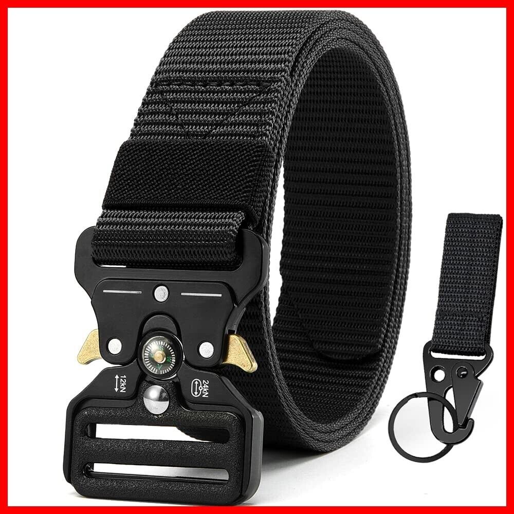 【ワンタッチ着脱&ベルトフック付き】片手だけで瞬間取り付けのワンタッチベルトです。オートロック式バックルで抜けにくさと外しやすさを両立し着脱のストレスゼロです。ベルトに取り付け可能な360°回転式ホルダーが付いています!ベルトポーチやホルスターなどを追加装備可能なタクティカルベルトです。
