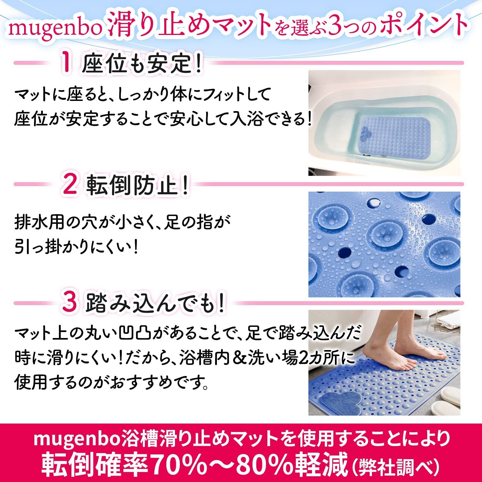 【介護福祉士監修×日経ヘルスケア掲載】 お風呂 すべり止めマット 転倒防止 浴槽 浴槽滑り止めマット 介護 介護用 足裏ブラシ機能付き mugenbo (ブルー)