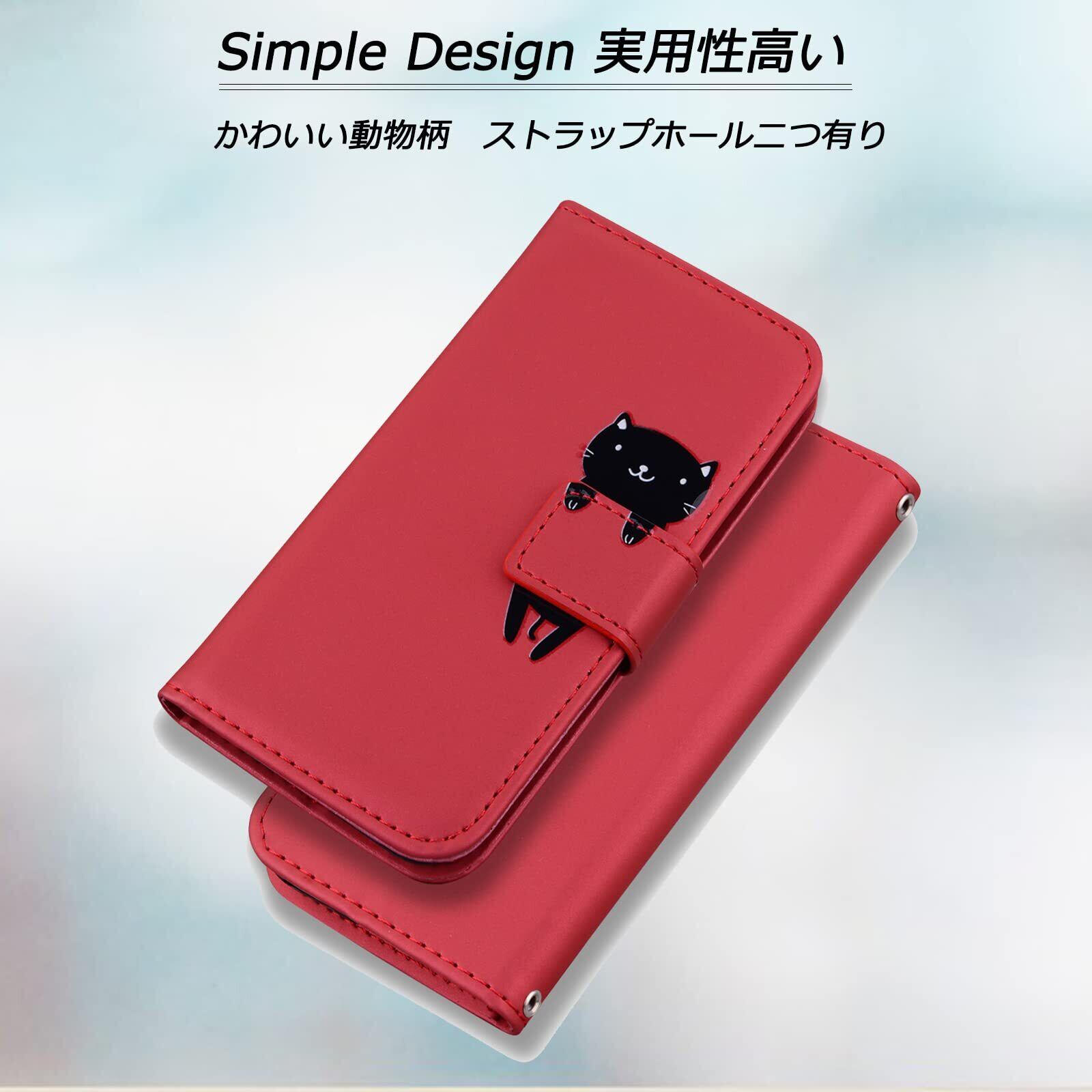 iPhone 11 ケース 手帳型 アイフォン11ケース 柔らかいTPUケース カード収納 ベルトマグネット スタンド機能 猫柄 防水 ノート型 人気 おしゃれ 男女兼用 赤 (iPhone 11 6.1インチ対応) レッド