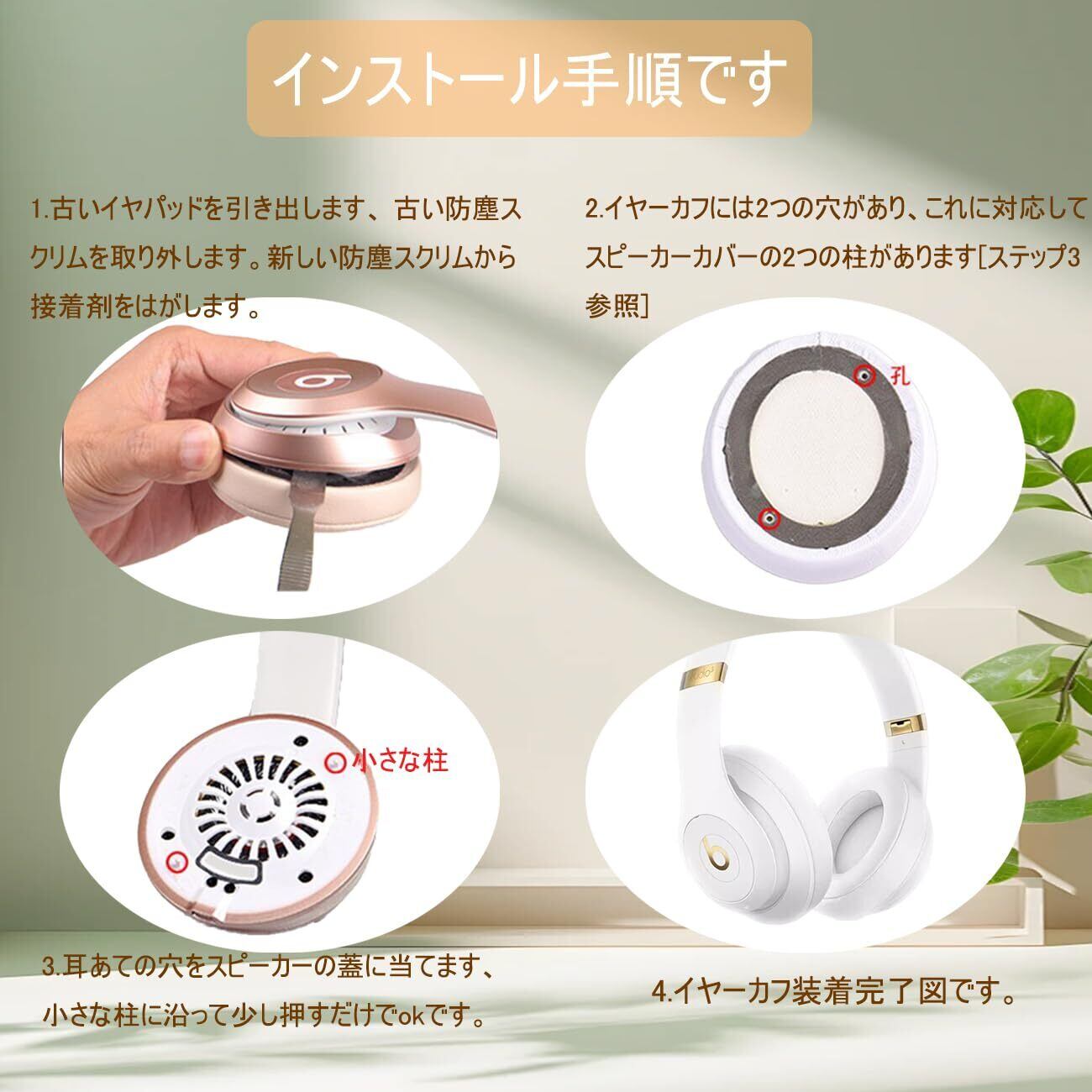 【簡単に入替】古いイヤーパッドを取り外しかつ数秒内に新イヤーパッドを取付て完了。非常に耐久性があり、脱落しにくい、組み立てたままのイヤホンを体験できます。イヤパッドの取り付け:1.古いイヤパッドを引き出します。 古い防塵スクリムを取り外します2.新しい防塵スクリムから接着剤をはがします3.新しいイヤパッドをすべての取り付けポストにクリップして取り付けます4.端に沿ってしばらく押します。