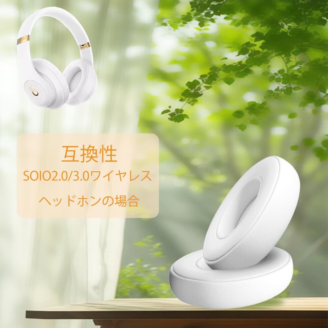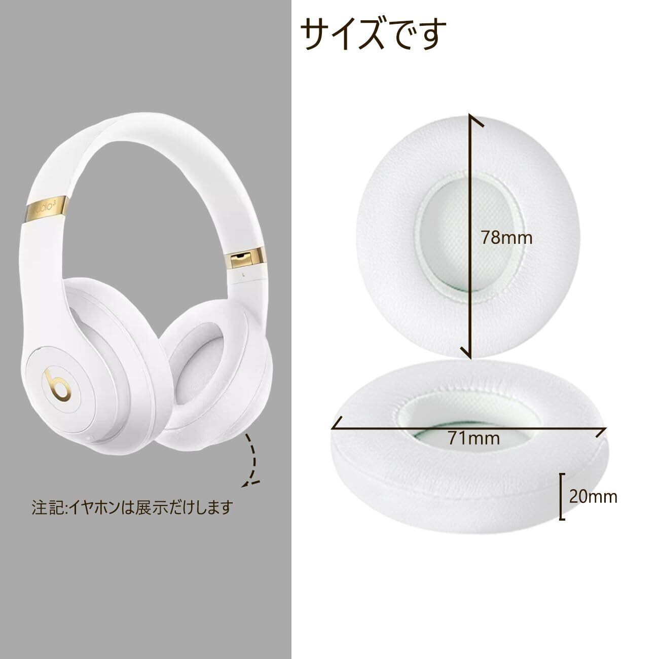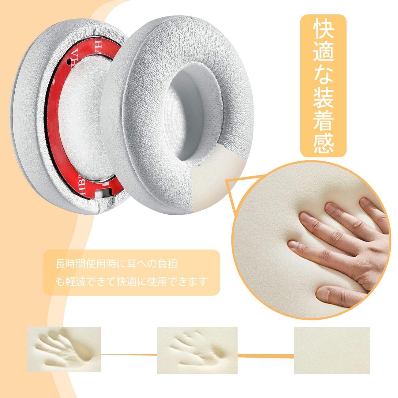 イヤーパッド イヤークッション Beats Solo2 & Solo3 Wireless 交換用ヘッドホンパッド 遮音 メモリフォーム (ホワイト)