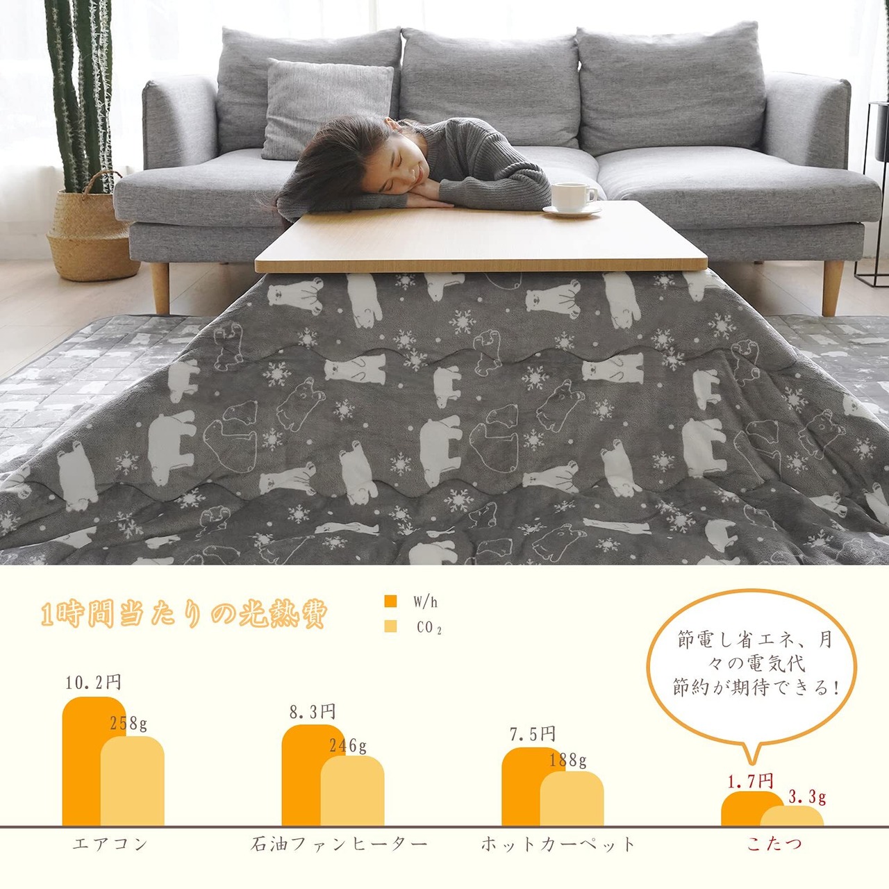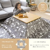 【商品情報】こたつ布団単品のサイズ・190x190cm(対応こたつ台:70~80×70~80cm);表地裏地・180g/m²高密度フランネル(美しい光沢感があり、手触りの良い);中綿・ポリエステル100%(350g/m²の詰め綿、約1.26kg)。Vamcheerのフランネルラグを併用していただくことで寒い日に心も体も暖かく幸せに過ごすことができます❣※ご注意:掛け布団のみ単品販売となります。こたつ台/フランネルラグは商品に含まれません。