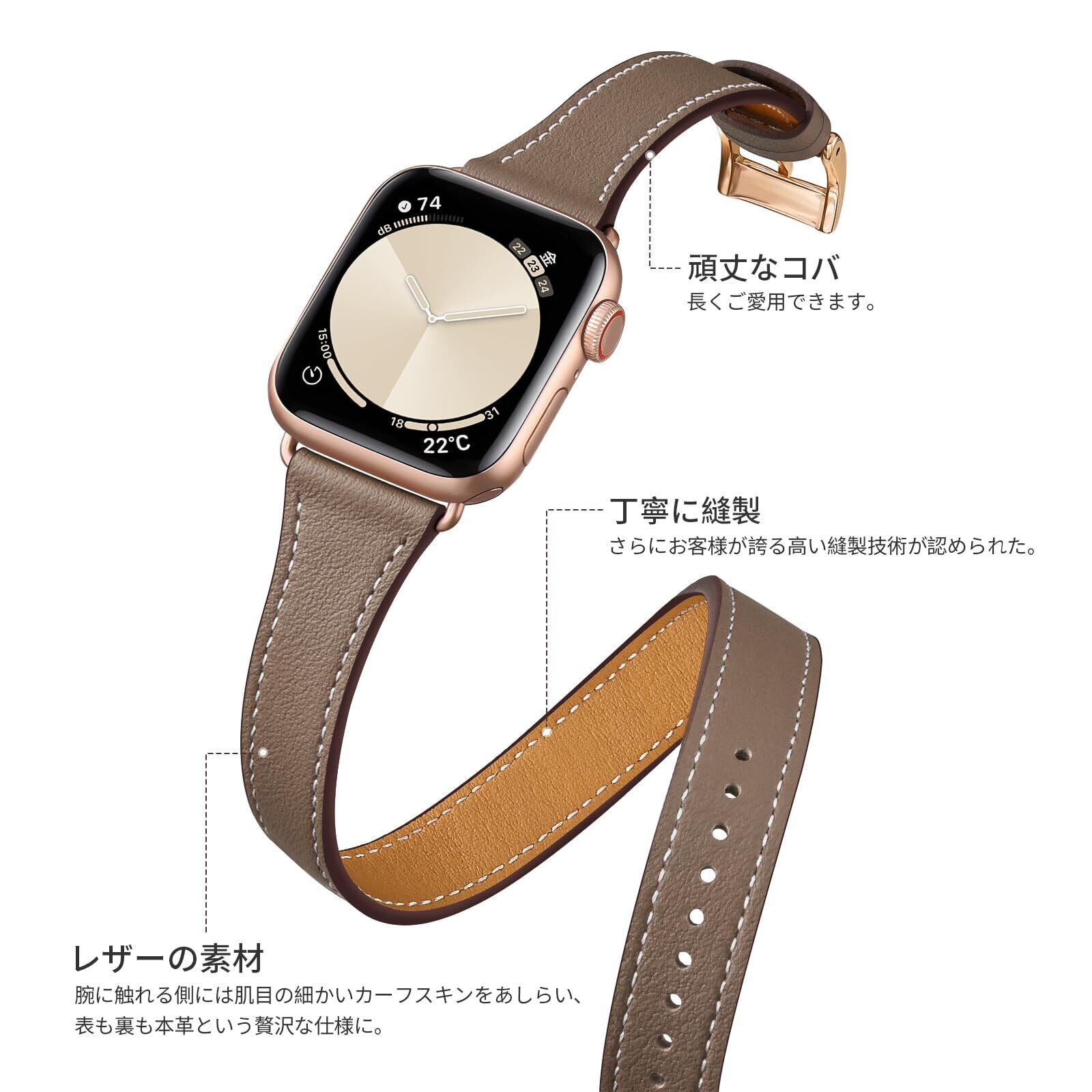 コンパチブル Apple Watch バンド レディース レザー 二重巻き コンパチブル アップルウォッチ バンド 女性 おしゃれ 細い 柔らかい 革 ダブルベルト iWatch 11 SE 10 9 8 7 6 5 4 3 2 1 SE2 SE3 に対応 (42mm 41mm 40mm 38mm, キャメルブラウン・ローズゴールド)