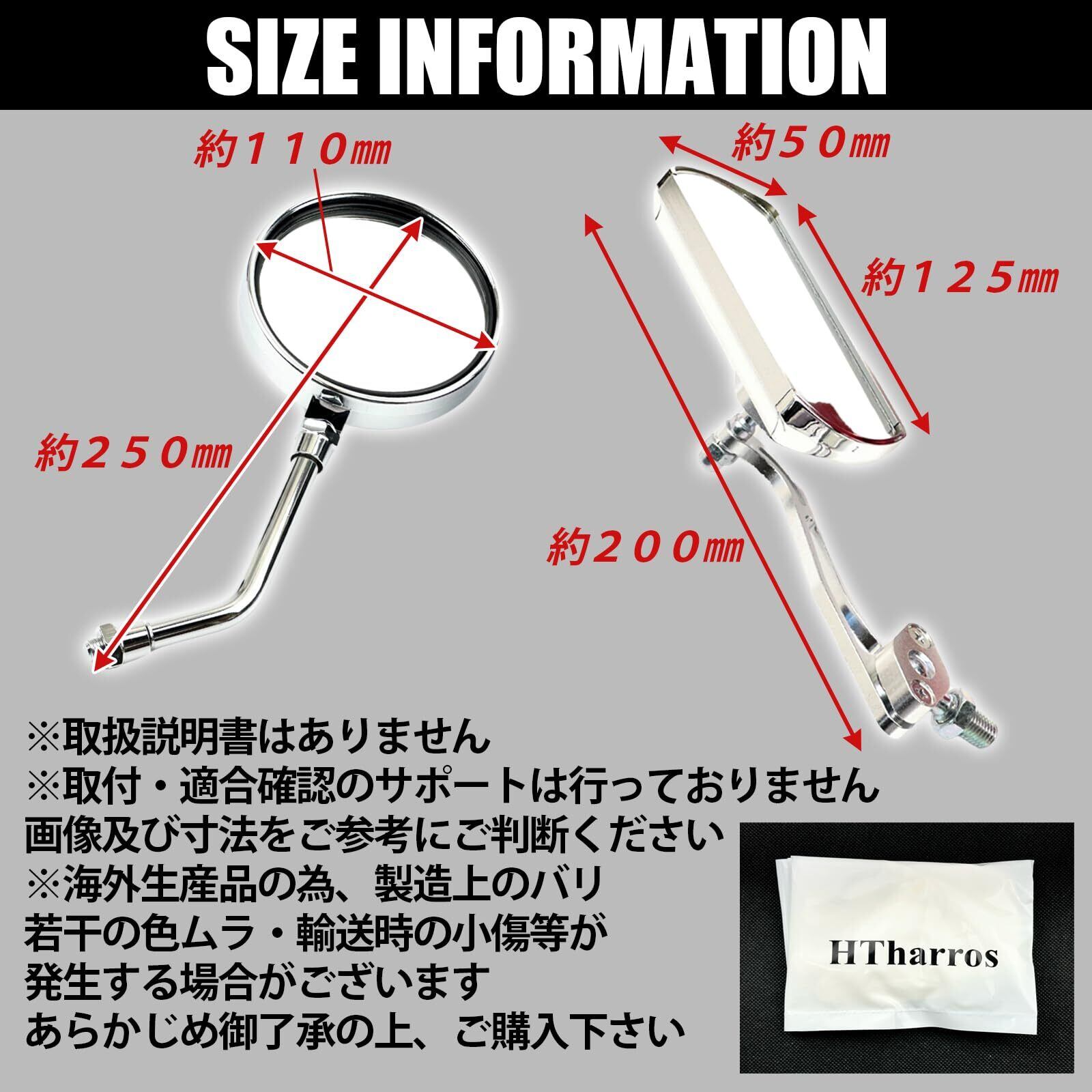HTharros バイク ミラー 左右セット アルミ 正ネジ10mm アダプター8mm シルバー 汎用 社外品 SB