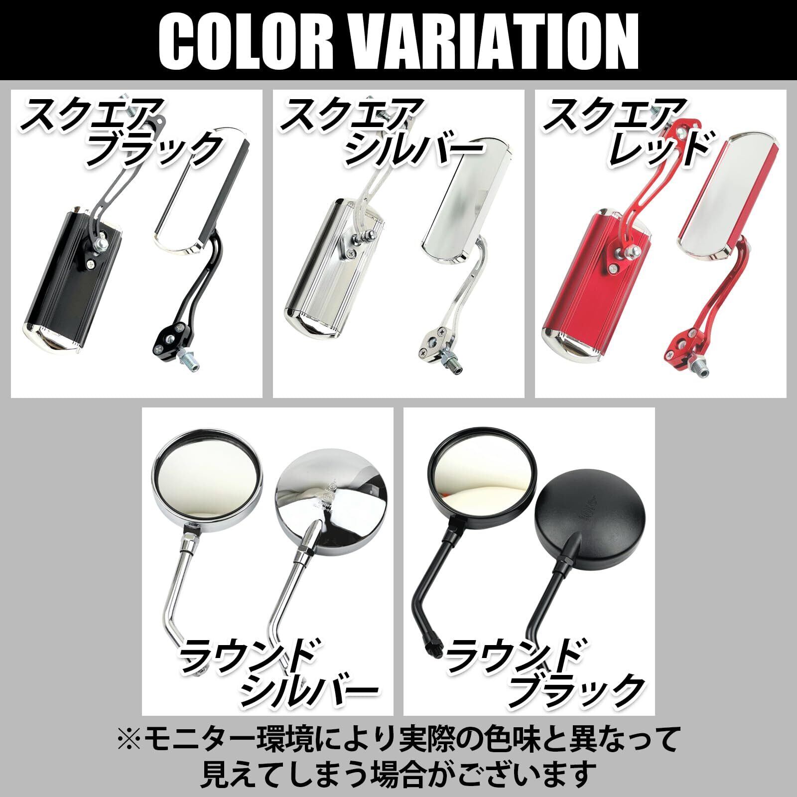 【スタイリッシュなデザイン】スクエアー、ラウンド形状のミラーはシンプルで洗練されたデザイン、バイクの外観を一層引き立てます。これにより、見た目の美しさと機能性を両立させることができます。【多機能対応】グロム、モンキー、ズーマー、アドレス、フォルツァ、シグナスX、ディオなど、さまざまなバイクモデルに対応しています。これにより、幅広いユーザーにとって最適な選択肢となります。