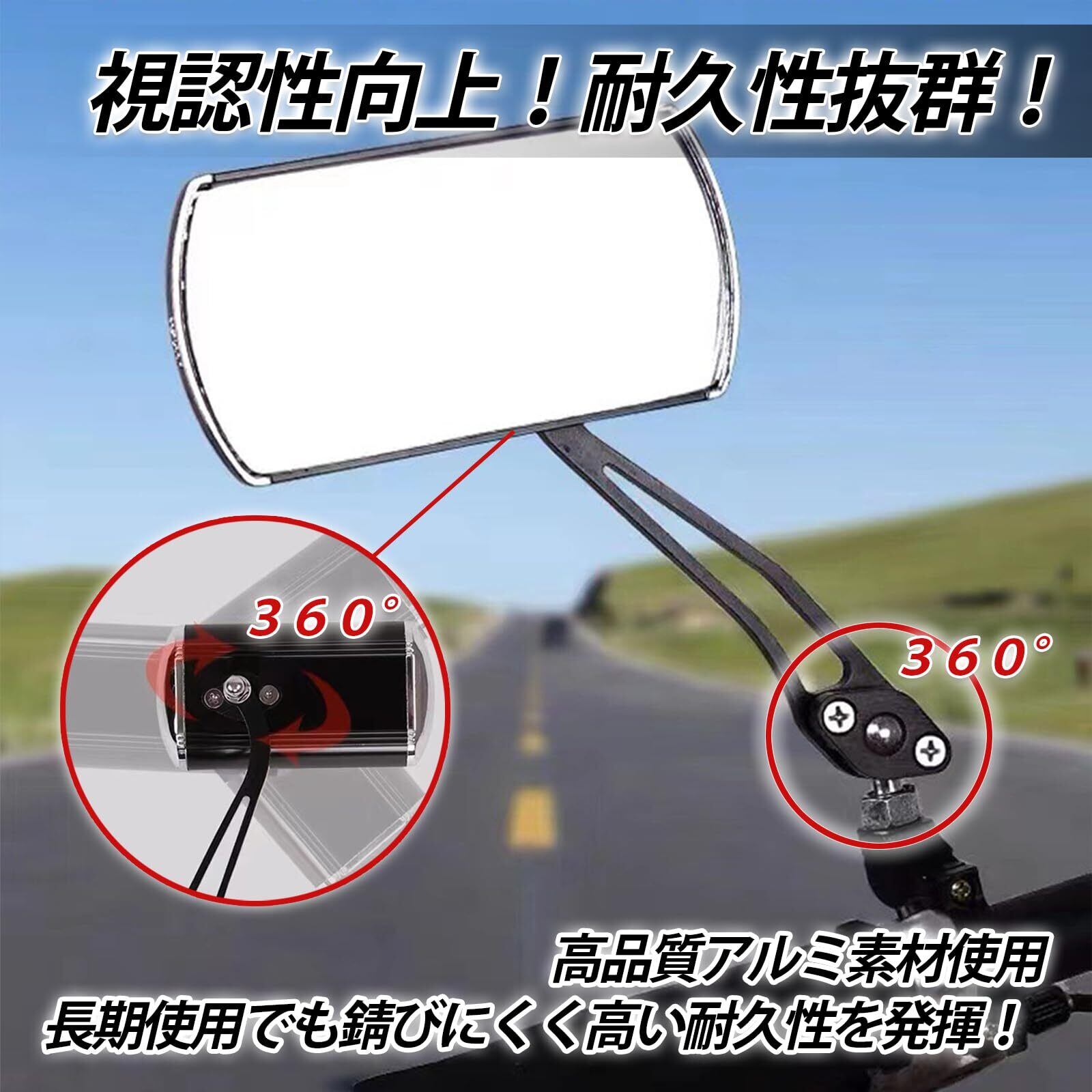 【視認性向上】アルミ バイクミラーは、広い視野を提供し、後方の状況をしっかりと確認できます。これにより、快適な運転が可能となり、事故のリスクを大幅に減少させます。