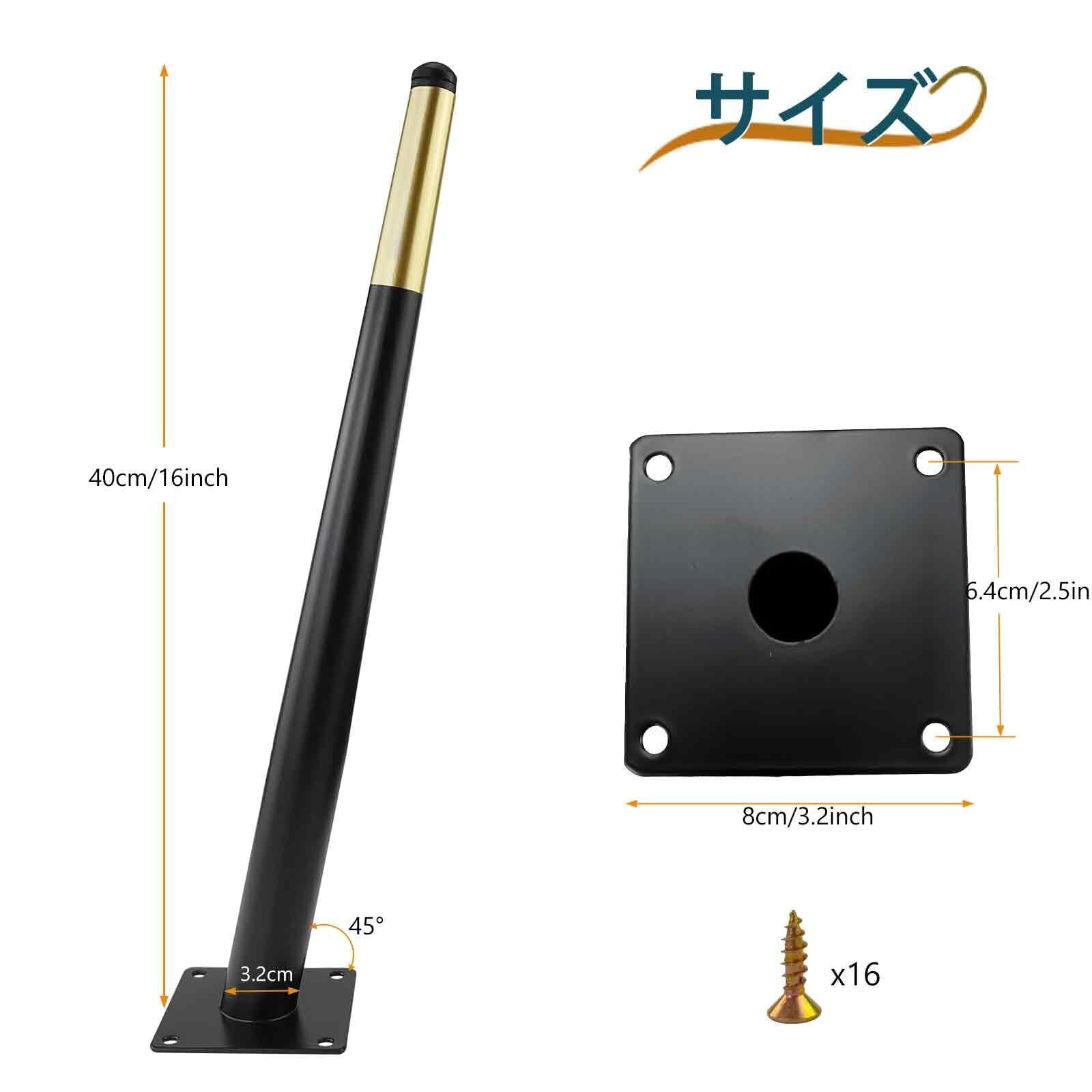 7Akiranoai 4本セット斜円錐 40CM テーブル脚 鉄脚 アイアンレッグ テーブル脚 ネジ付属 家具脚、コーヒーテーブル脚