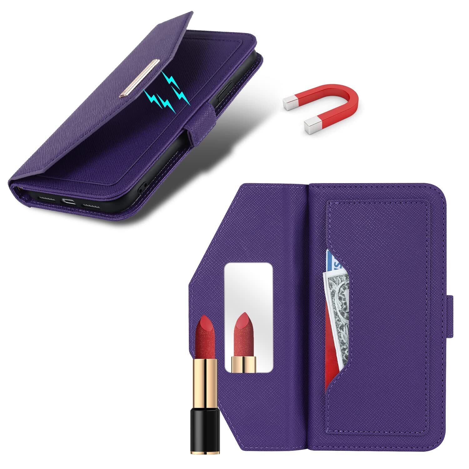 【高級皮革】高品質のPUと柔軟なTPUシェルを組み合わせて、スタイリッシュな外観、快適で滑らかなライン、優れた放熱性と耐衝撃性、優れた耐傷性と防塵性能を備えています. 変形しにくく、取り外しも簡単なので、スマホ自体を傷つける心配もありません。※注意:化粧鏡の素材は柔らかい。