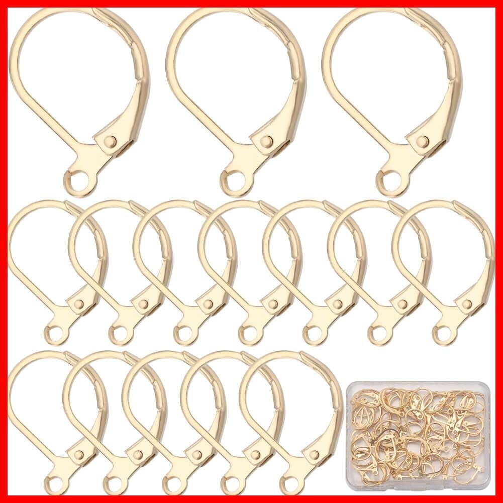 SUNNYCLUE 1箱60個 24K鍍金 レバーバック ピアス パーツ パーツ フレンチ イヤリング フック パーツ フレンチフック フープ ピアス パーツ イヤーワイヤー レバーバック イヤーワイヤー フランス式 ループ付き イヤクリップ ピアス パーツ フック ゴールデン めっき 金具 スタッドピアス 耳飾り イヤリング メンズレディ ジュエリー イヤリング作り
