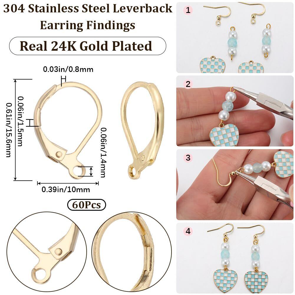 24Kゴールドメッキイヤリングフック:ステンレススチールレバーバックイヤリング, 開閉に便利なレバーバックデザインを採用, 耳を痛めるのは簡単ではない. 各イヤリングフックは本物の24Kゴールドメッキです。絶妙な技量, フランスのエレガンスをあなたにプラス.