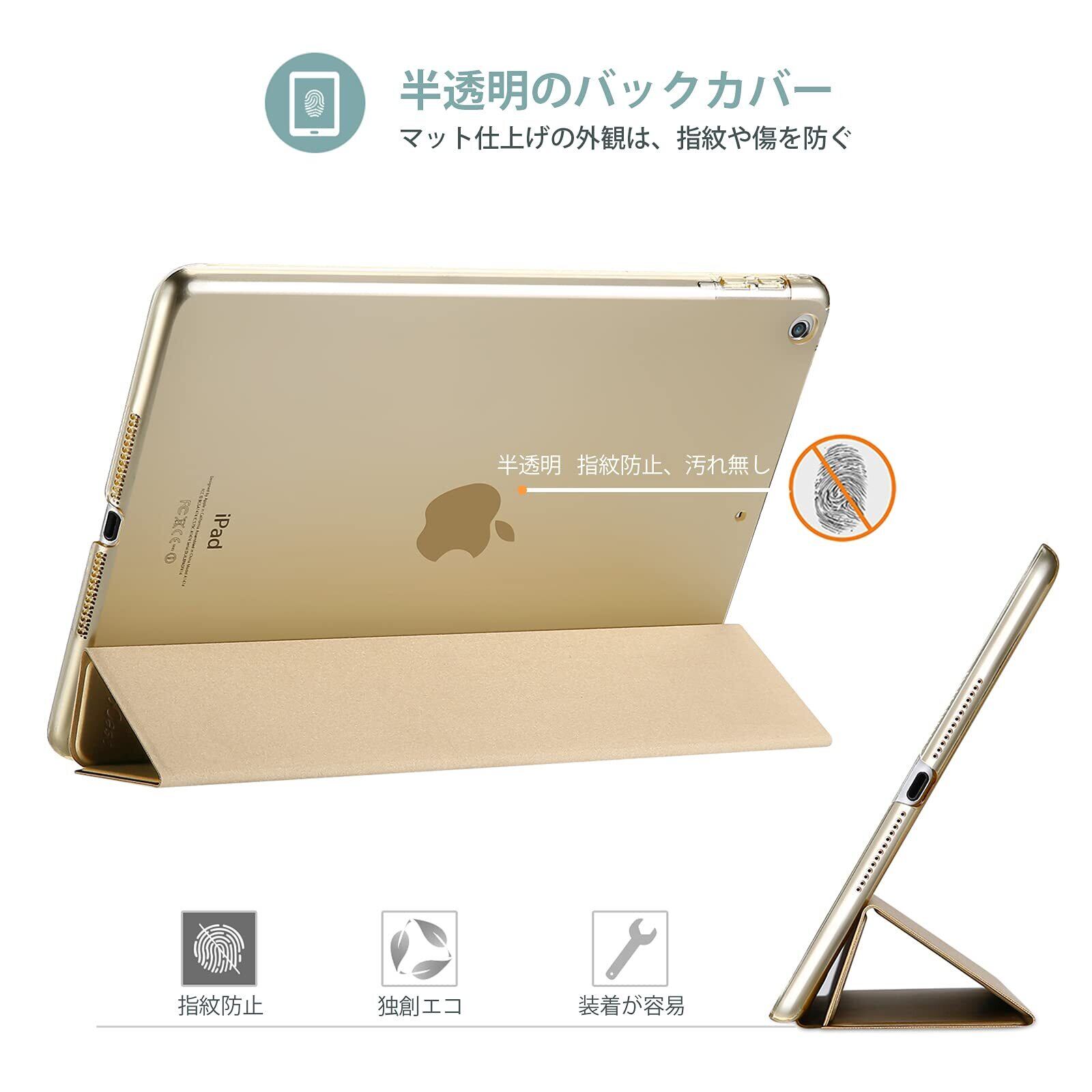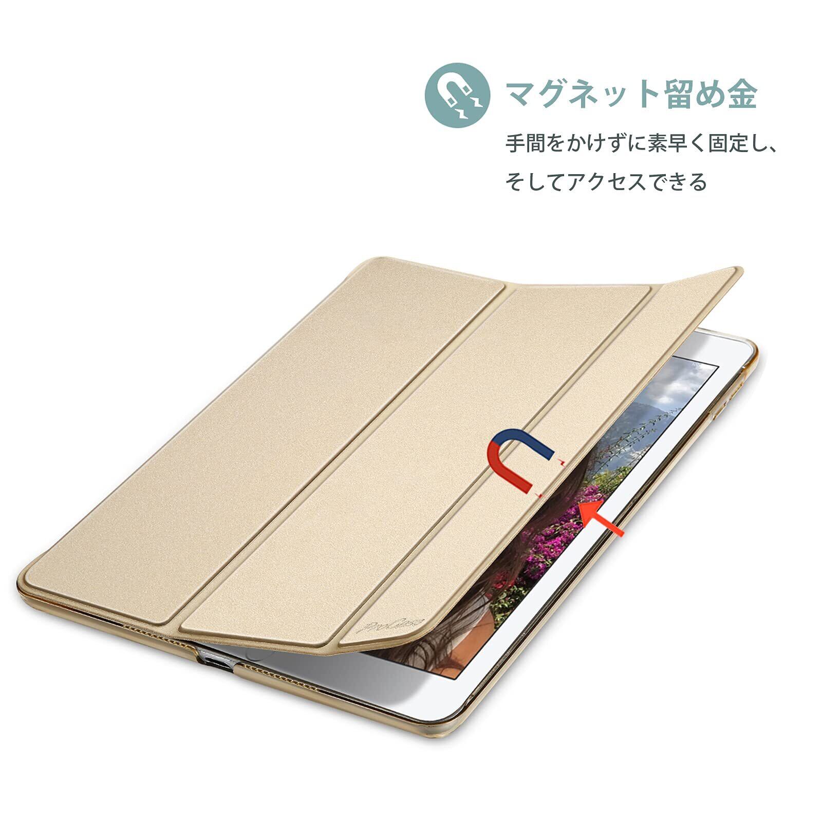 ProCase iPad 9.7"(旧型)ケース スマート 超スリム スタンド フォリオ保護ケース 半透明フロスト バックカバー 対応機種:iPad 9.7" 第6世代 2018 / 第5世代 2017 - ゴールド