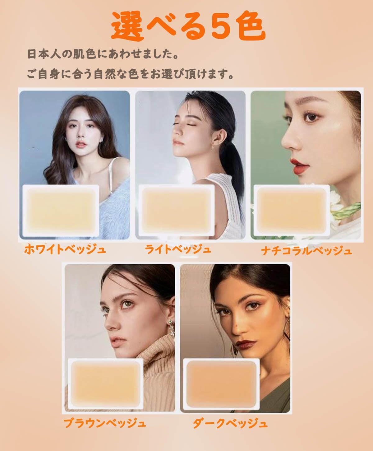 【極薄フィルム】簡単に貼れて好きなサイズにカットも。0.02mmの極薄フィルム/本物の肌に近い反射率/なめらかなグラデーション/5色のカラーバリエーションで、素肌のようになじむ自然なつけ心地。水に強く1週間継続使用が可能。各種試験をクリアした安心安全の品質。