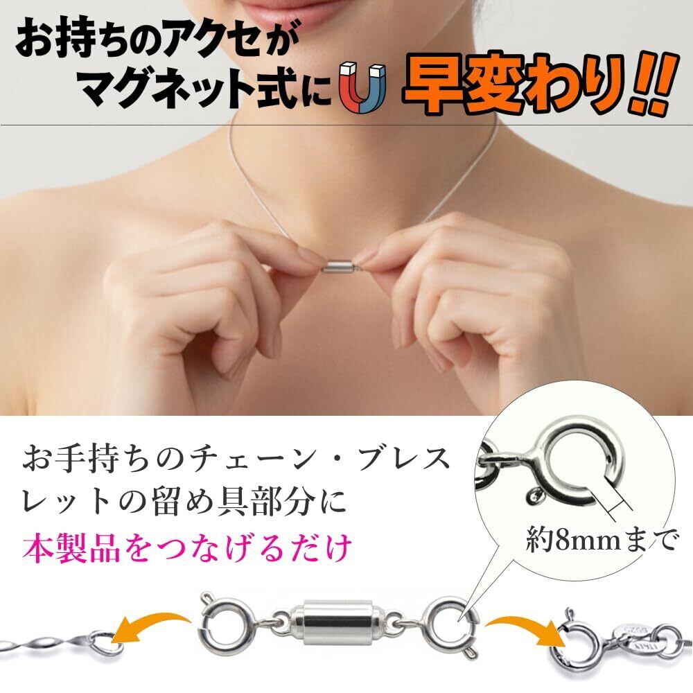 【簡単着脱!強力なマグネット内蔵の留め具】ネックレス・チェーンはもちろん、ブレスレットやアンクレットなどお持ちのアクセサリーの留め具の間に本製品をつなぐだけ。着脱しやすいマグネット式のアクセサリーに早変わり。強力な磁力のマグネットなので、普段使いでしたら滅多なことでは外れません。