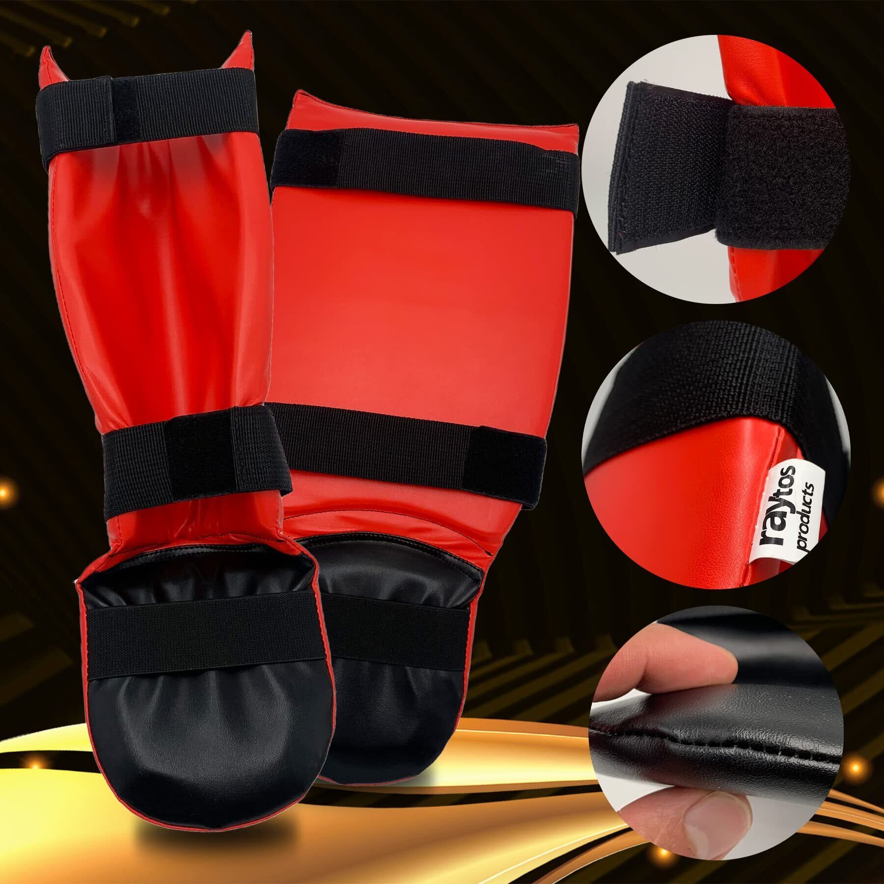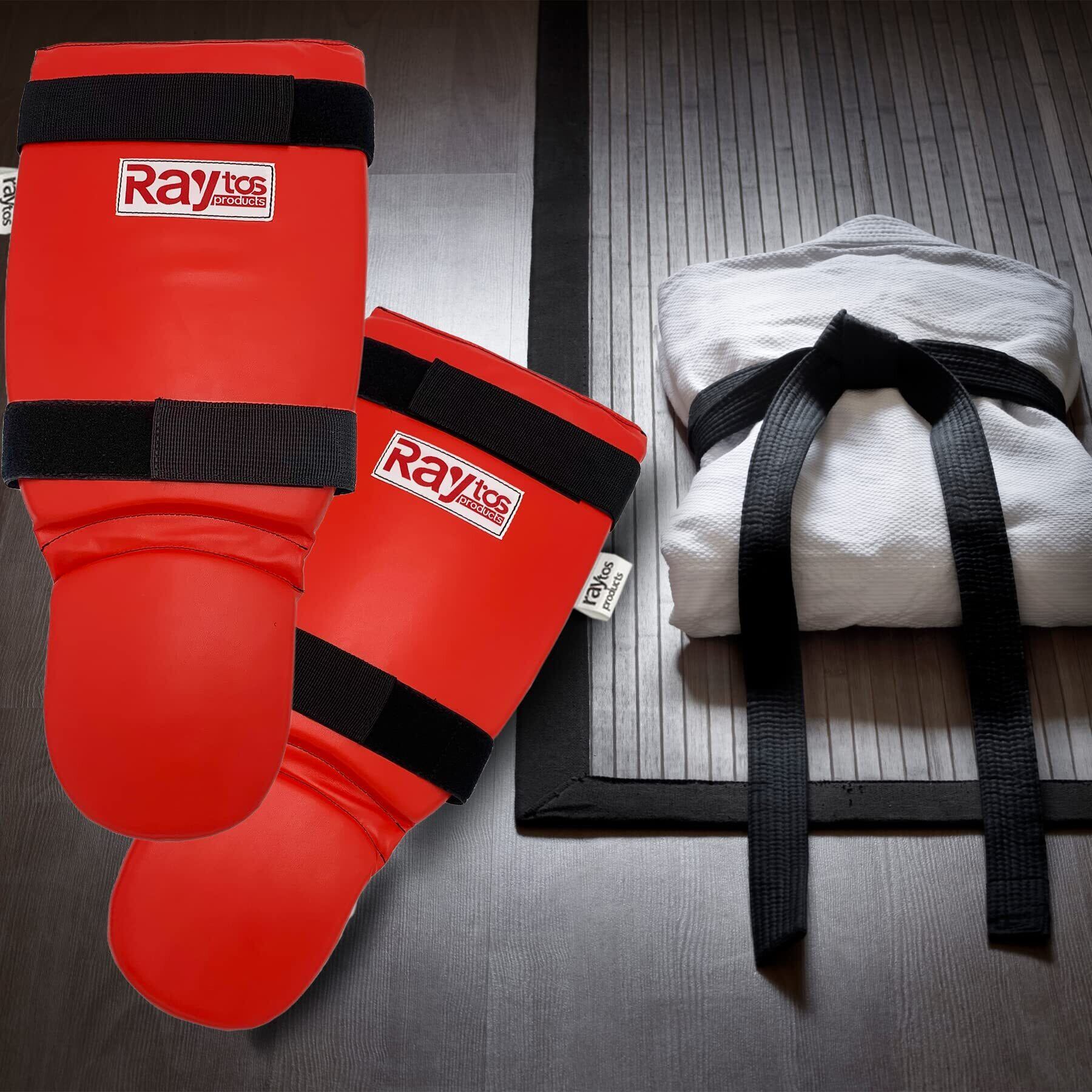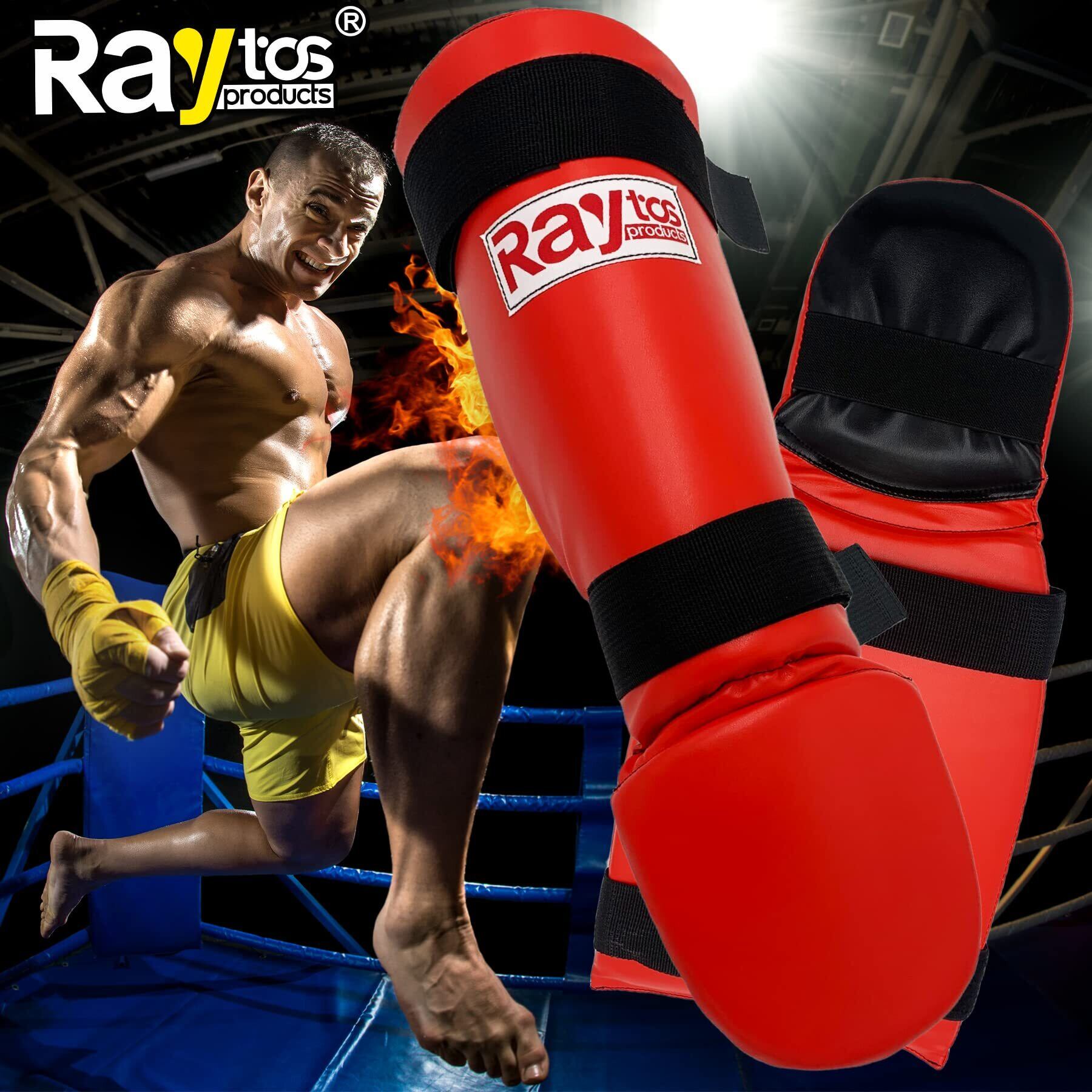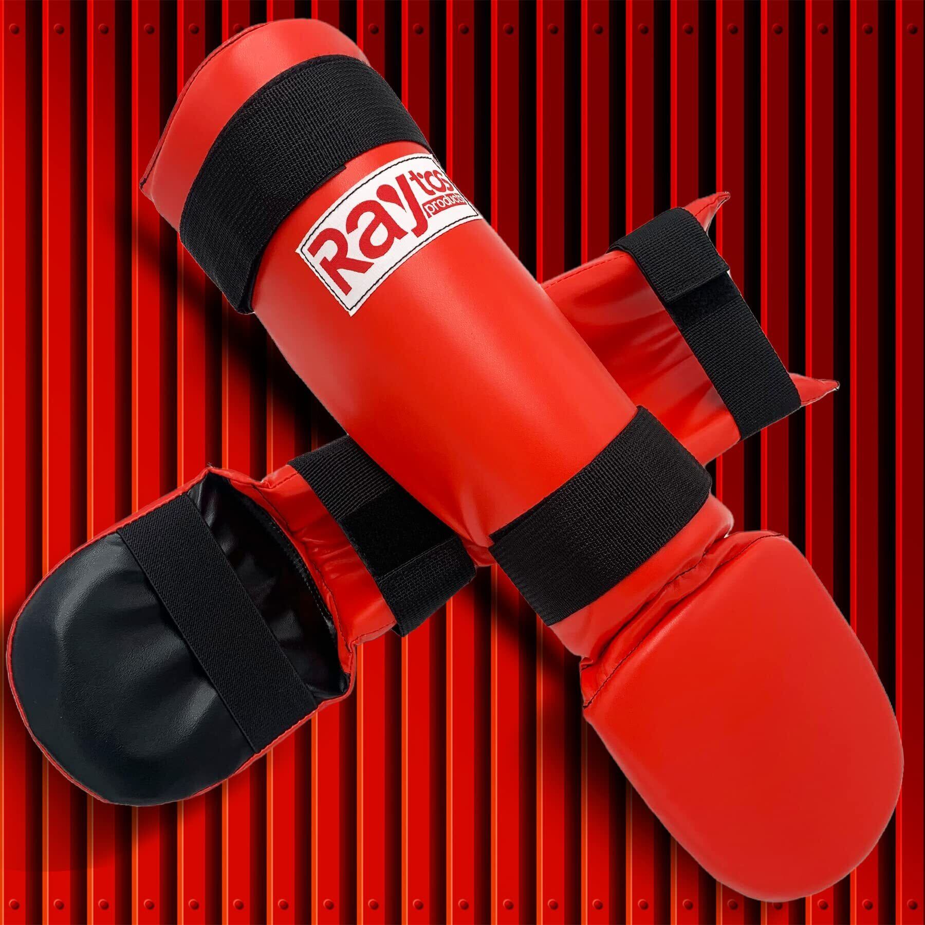 Raytos ベーシックレッグガード レガース キックボクシング 足サポーター キックボクシング レッグガード すね当て 3cm厚手インナー 衝撃吸収 格闘技 空手 防具 プロテクター (赤)