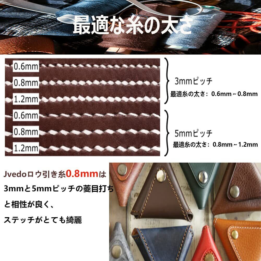 【最適太さ:0.8㎜】 ポリエステルろうびき糸、太さ0.8㎜、3㎜と5㎜菱目打ちと相性よく、通しやすく平紐タイプでステッチも綺麗に。、レザークラフト手縫いに最適。