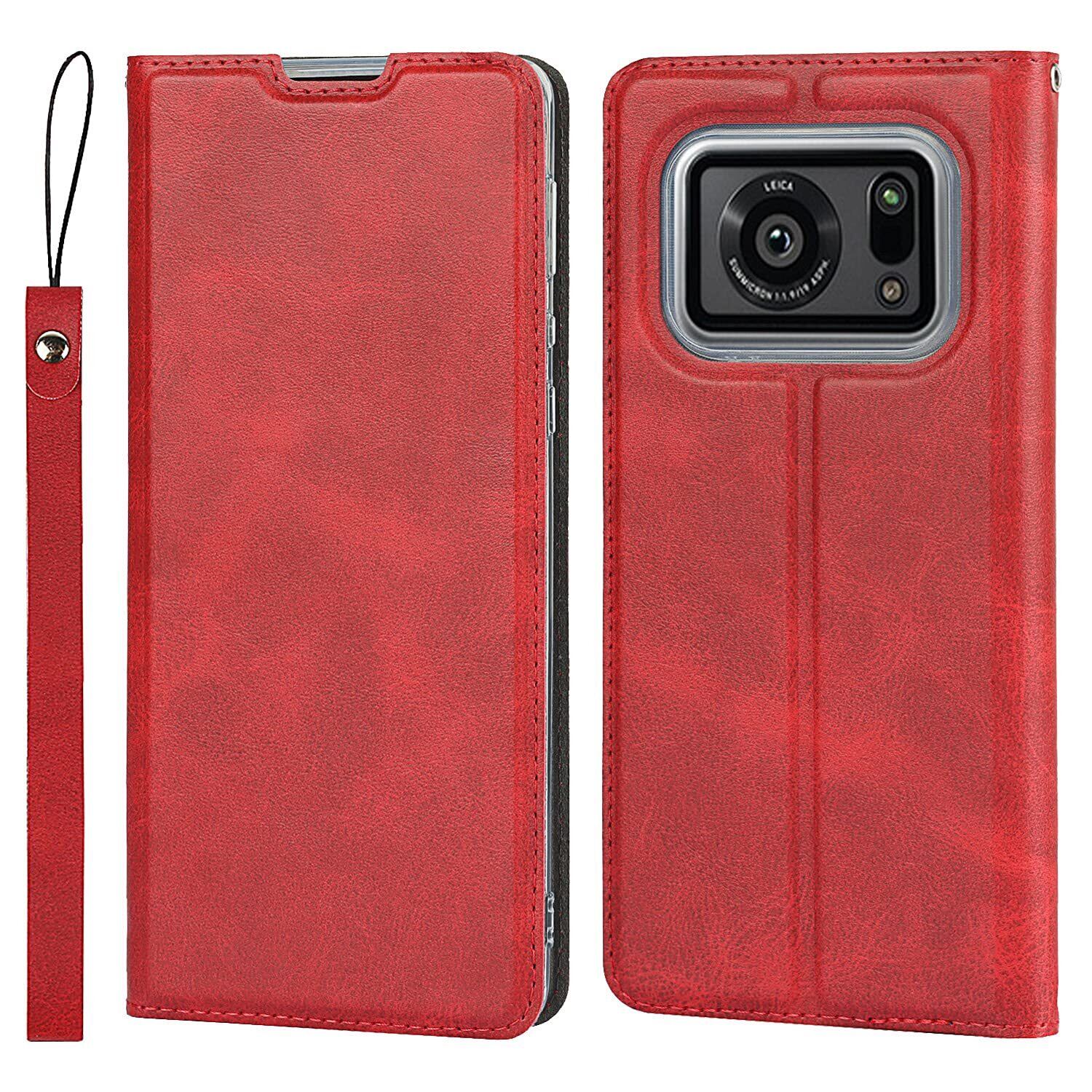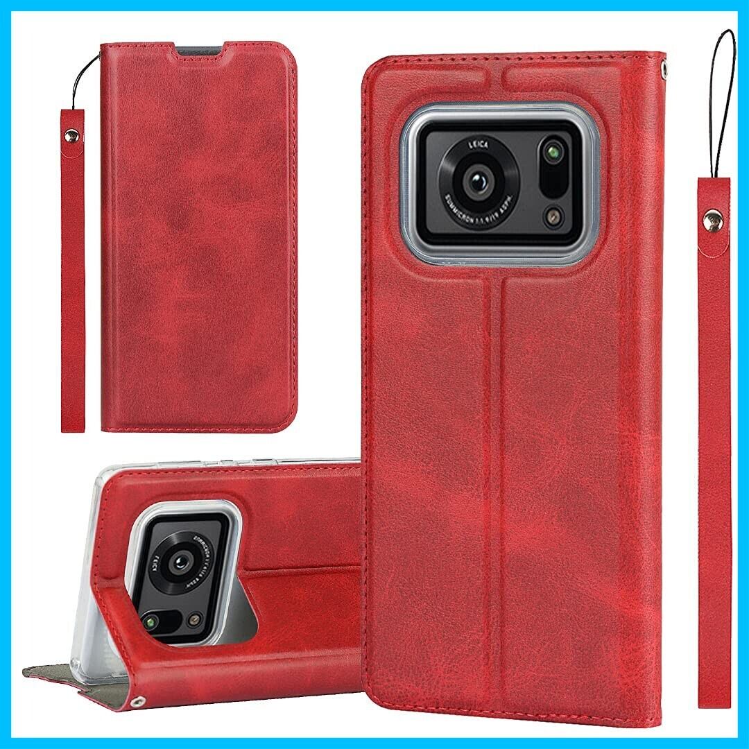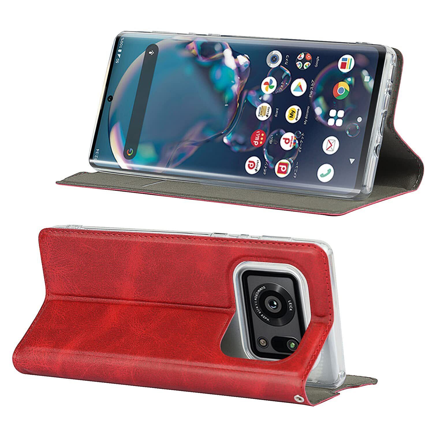 AQUOS R6 ケース 手帳型 AQUOSr6 SoftBank SH-51B docomo SH-M22 A101SH SIMフリー 全対応 シャープ アクオス R6 カバー SH51B SHM22 手帳 アクオスR6 スマホケース 携帯カバー case 適用 iCoverCase マグネット カード入れ付き スタンド 軽量 スプラットホール付き ストラップ 落ち着いた レッド