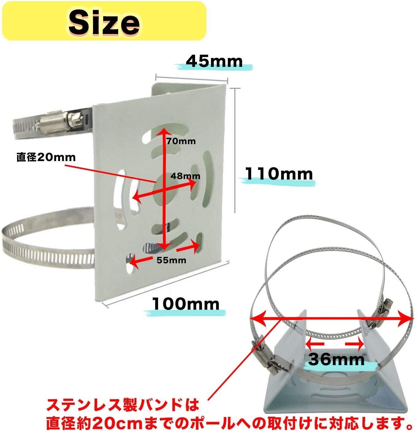防犯カメラ用 ポール 2個セット 取り付け金具 取付金具 スタンド とりつけかなぐ ぼうはんかめら ダミー ステッカー ワイヤレス 円柱 角柱 屋外 ダミー ダミーカメラ 監視カメラ ダミー ステンレスバンド 4本付