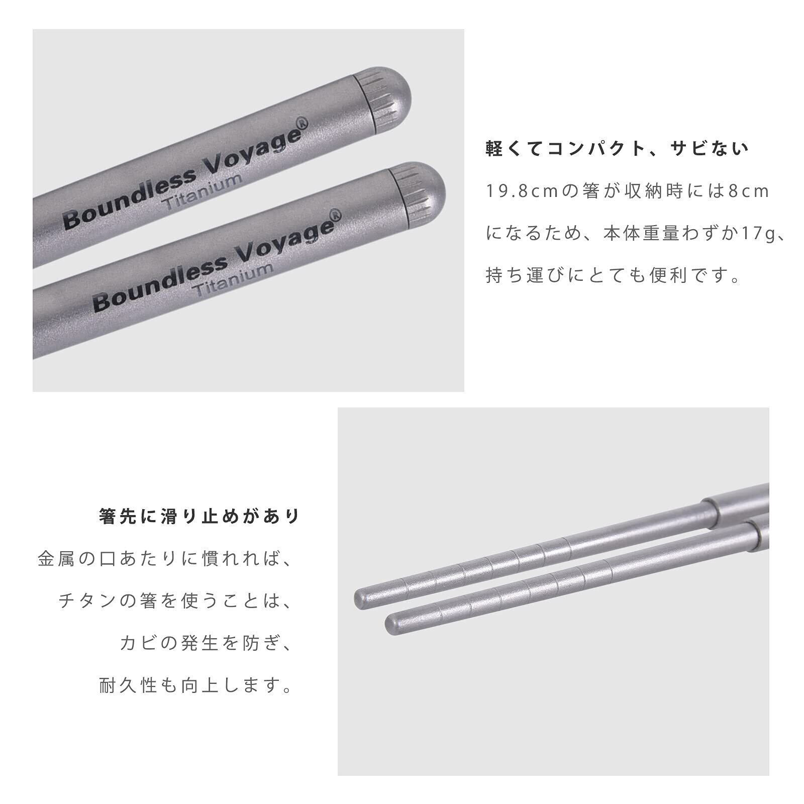 Boundless Voyage チタン箸 折り畳み式箸 携帯箸 19.8cm 収納時8cm アウトドア キャンプ 箸 バーベキュー箸 コンパクト 持ち運びに便利 軽い 約17g (伸縮箸)Ti1004T