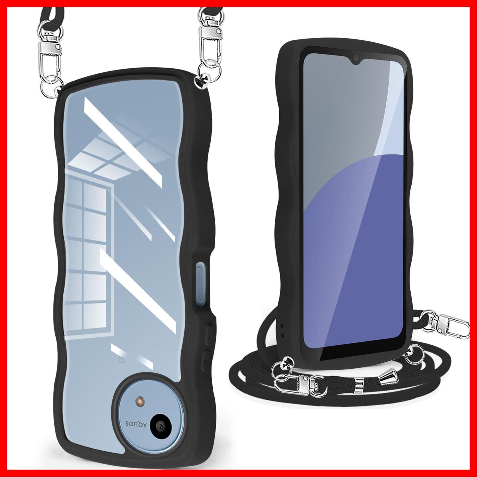 AQUOS Wish4 ケース クリア ショルダー 耐衝撃 AQUOS Wish4 SH-52E ケース 人気 かわいい カバー 透明 アクオス Wish4 スマホケース 薄型 軽量 首かけ 肩掛け 縄掛けケース ストラップ付き 取り外し可能 長さ調整可能 ワイヤレス充電対応(ブラック)