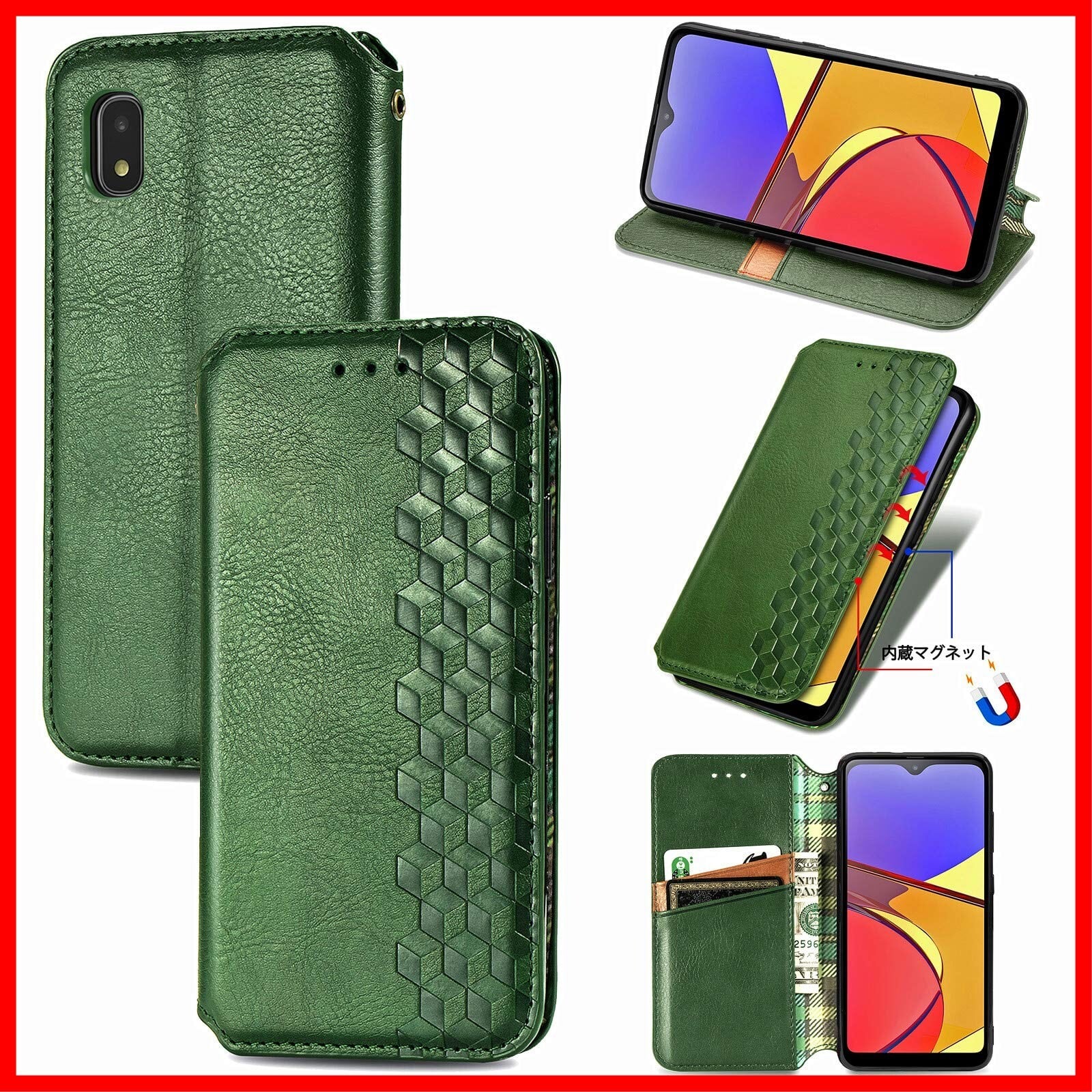 に適用するGalaxy A21 SC-42A / Galaxy A20 SC-02M SCV46ケース 手帳型 ノートブック型ビジネスフォンケース 携帯電話保護カバー強い吸引力ノートブック型多機能携帯電話ホルスター財布携帯電話ホルダーバンプパターンテクスチャ耐久性摩擦耐性携帯電話ケース男性と女性に適した多色オプション (グリーン)