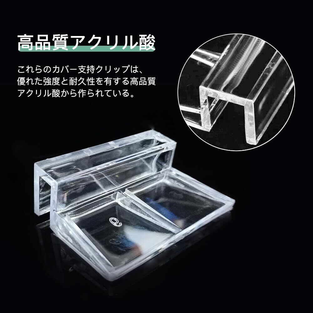 【高品質アクリル酸】これらのカバー支持クリップは、優れた強度と耐久性を有する高品質アクリル酸から作られている。透き通った表面は、水族館の住民や景観を自由に見ることができ、水中世界を十分に楽しむことができます。透明度が高いため、詳細がすべて表示され、戦車環境の楽しみと観察が強化されます。