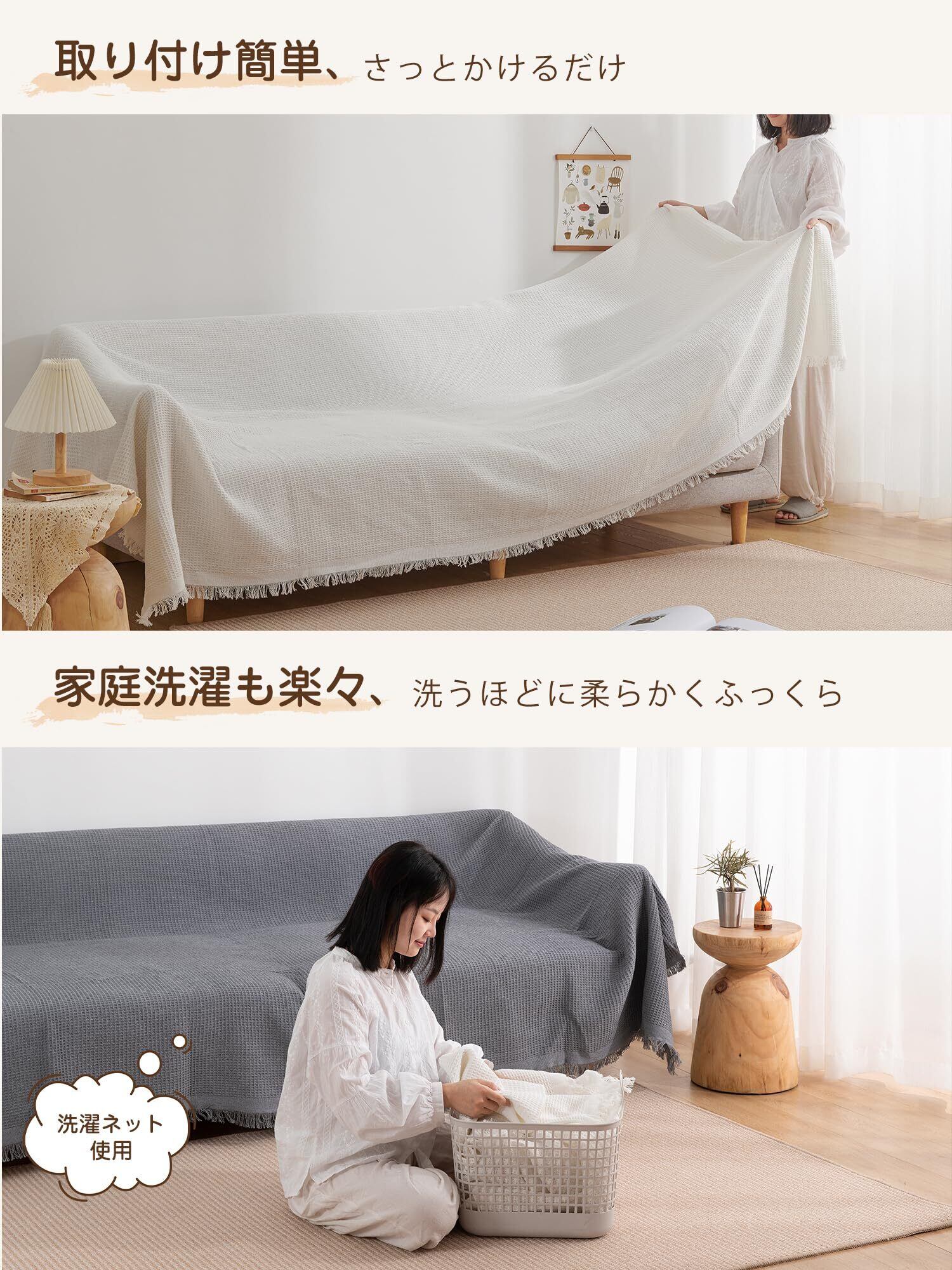 ・【幅広い使用範囲】かけるだけでソファー全体をカバーでき、防塵やキズ防止などの機能があり、ソファーをしかっりと保護できます。多機能で、ベッドカバー、テーブルクロス、冷房毛布、ひざ掛け、防塵カーペット、キャンプカーペット、旅行毛布などとして一年中活躍できます。