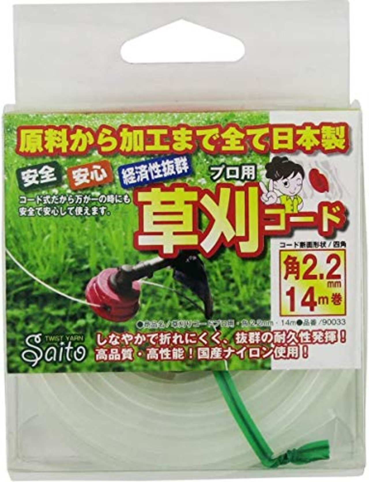 斉藤撚糸 草刈コード レギュラー 14m 四角2.2mm