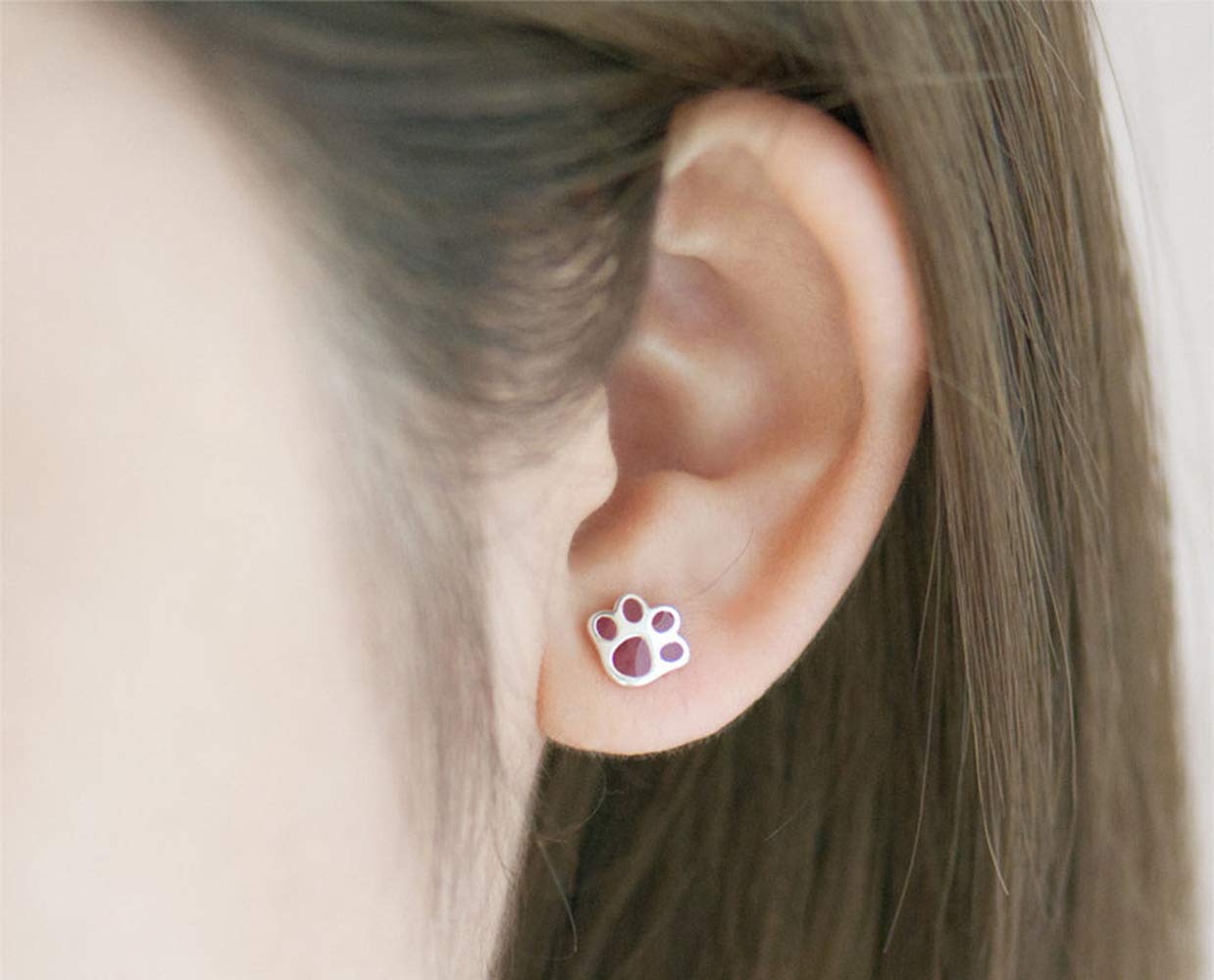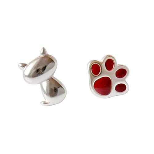 Deelfel ピアス レディース 金属アレルギー対応 シンプル かわいい おもしろい非対称 ねこ 肉球 猫ピアスシルバー 925アシンメトリーピアス 両耳用 女性 プレゼント