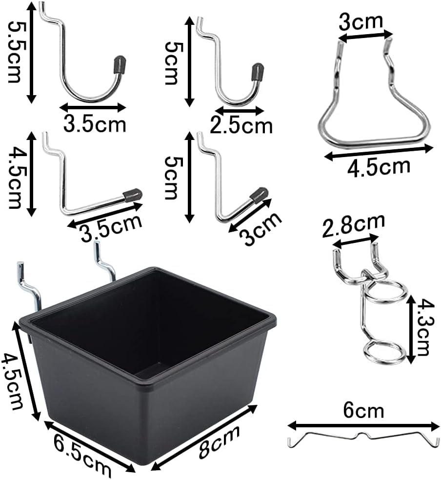 【用途】作業台、工房、キッチン地下室、店舗、学校、道具屋、工場、または倉庫の整理に役立つさまざまな金属ペグフックです。