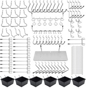 【パッケージ内容】有孔ボード用のスチール製T型フック150個セットです。 6つのパーツ収納ボックスが含まれています。