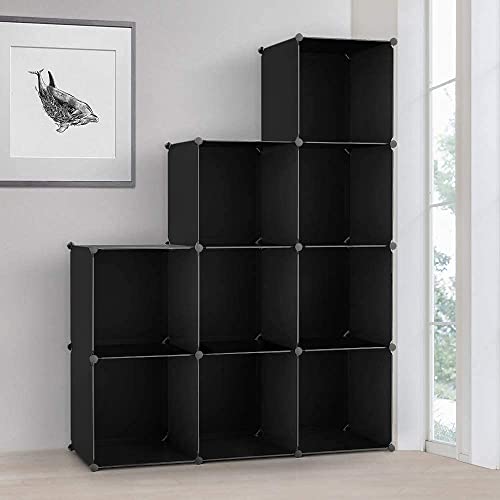 Vacplus 本棚 大容量 収納棚 組み立て式収納 ラック 衣類収納ボックス 整理棚 多用途 耐久性に優れ 省スペース 収納便利 整理整頓 幅30×奥行30×高30㎝ 9ボックス入り ブラック